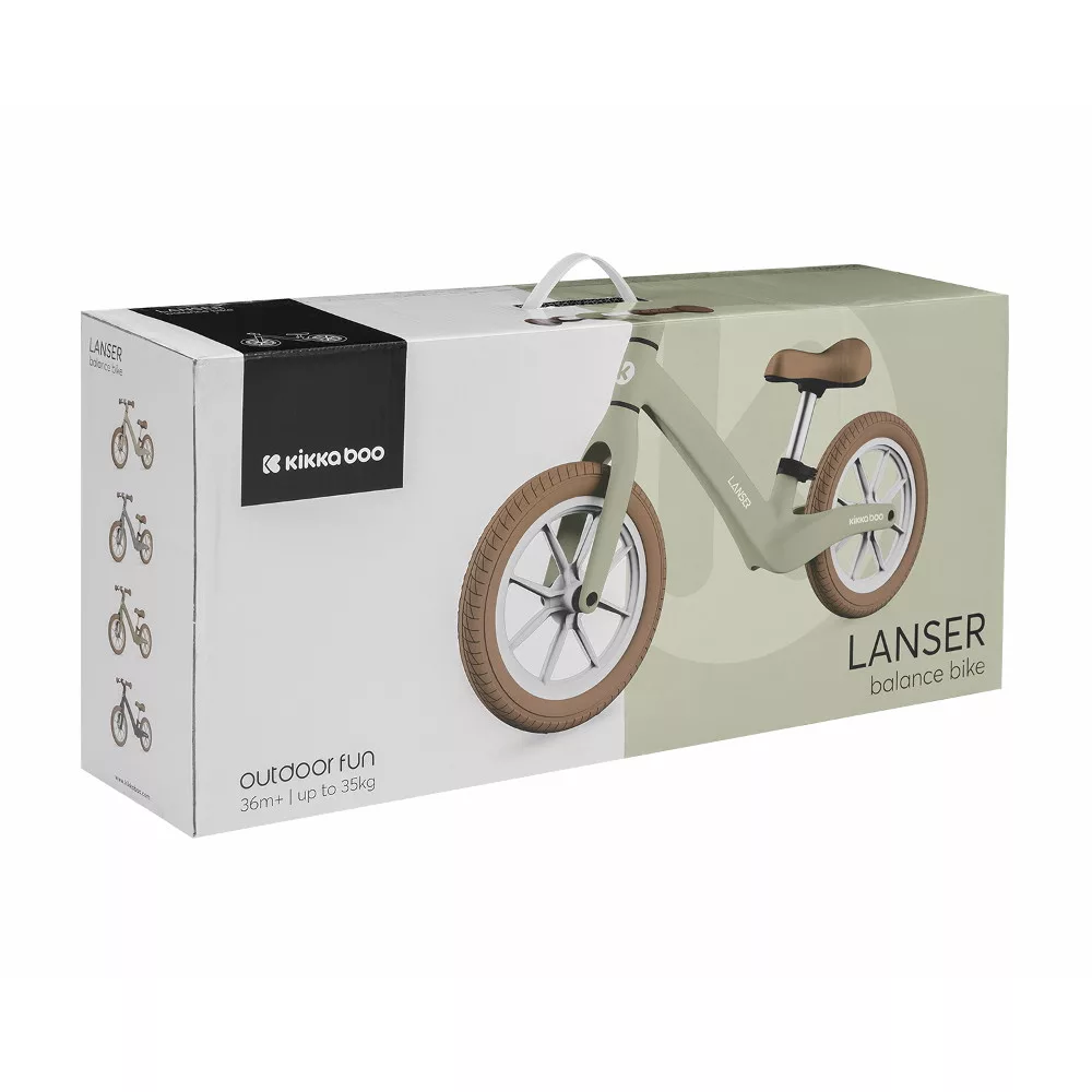 Kikkaboo futóbicikli Lanser • Extravagáns formatervezés• 2-6 éves korig használható;• Fejleszti az egyensúlyérzéket;• Könnyû és tartós üvegszálas váz;• Állítható magasságú ülés;• Tartós 12"-os poliuretán kerekek;• Kényelmes ülés;• Csúszásgátló fogantyúk.Méretek: - Termék: 85x38x54 cm / 3,1 kg- Színes doboz: 71x16x32 cm / 4,2 kg / 1 db/ctn