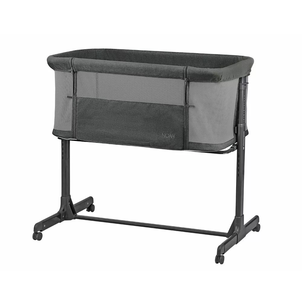 Kikkaboo kiságy babaöböl Noah sötétszürke • Születéstõl 6 hónapos korig használható;• ágy melletti kiságy, amely lehetõvé teszi a szülõk számára, hogy gyermekük közelében aludjanak;• Könnyû alumínium keret;• 6 fokozatú magasságállítás;• Anti-reflux pozicionálás;• Lehajtható elülsõ oldal;• Hálós részek a jobb szellõzés érdekében;• Kiegészítõ heveder a kiságynak a szülõi ágyhoz rögzítéséhez;• Puha matracbetét;• 4 kerék fékekkel a könnyû mozgatáshoz. Méretek:- Termék: 56x89x71-81,5 cm - Doboz: 52x14,5x88 cm