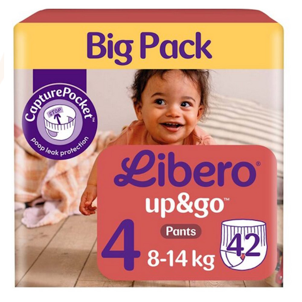 Rugalmas, nagy nedvszívó képességû bugyipelenkaPuha, anyagában elasztikus derékrészA bugyipelenka derékrésze anyagában elasztikus. Puha és rugalmas, mely nem nyomja a baba pocakját és mindig jól illeszkedik.Nedvszívó magA légáteresztõ anyagoknak és a nedvszívó magnak köszönhetõen a baba bõre puha és száraz marad. A Libero Up & Go bugyipelenka rendkívül megbízható védelmet nyújt a pelenkacserék között.Szuperpuha, szivárgás elleni védõgátakA Libero Up & Go bugyipelenkák megbízható védõgátakkal védõgátjai biztonságos védelmet nyújtanak megakadályozva a szivárgást.Bõrgyógyászatilag teszteltA szuperpuha, rugalmas Libero Up & Go bugyipelenkákat a tipegõ gyermekek igényeire szabtuk. A valódi gondoskodás érdekében a pelenkákat bõrgyógyászatilag teszteltük.Nem tartalmaz testápolótAz Up & Go bugyipelenkák nem tartalmaznak testápolót. A Libero azt szeretné, hogy te dönts arról, milyen termék ápolja a legjobban babád bõrét – legyen az testápoló, krém, kenõcs vagy olaj.CombgumírozásA Libero Up & Go bugyipelenka minden pillanatban jól illeszkedik. A rugalmas, körkörös combgumírozás követi a baba combjának alakját, így biztosítja, hogy a pelenka éjjel és nappal egyaránt kényelmes maradjon.Puha belsõ anyagokA bugyipelenka tökéletesen rásimul a gyermek érzékeny bõrére. Az 4-es méretû Libero Up & Go bugyipelenka belsõ kialakítása biztosítja a mozgás teljes szabadságát.Légáteresztõ anyagokA Libero Up & Go bugyipelenka légáteresztõ anyagokból készül. Ennek köszönhetõen a baba bõre mindenkor puha, sima és száraz marad.Könnyû kicserélniOlyan könnyû fel- és levenni, mint egy kisnadrágot! A Libero Up & Go bugyipelenkával a pelenkacsere egyszerûvé válik– neked és babádnak egyaránt. Csak szét kell szakítani az oldalánál, azután kis csomagba összecsavarni és a ragasztószalaggal lezárva higiénikusan lehet eltávolítani a tartalmával együtt. Tökéletes megoldás arra az esetre, ha a baba már unja a pelenkázót.Szívügyünk a környezetA Libero bugyipelenkái szintén megkapták a hivatalos Nordic Ecolabel környezetvédelmi tanúsítványt. A Libero Up&Go bugyipelenkák FSC-tanúsítvánnyal is rendelkeznek, amely igazolja, hogy támogatják a felelõs erdõgazdálkodást. A cél, hogy minél inkább csökkentsék a környezetterhelést, így gondosan ügyelnek szállítóik megfelelõ kiválasztására, a környezetbarát gyártási folyamatokra és a felhasznált anyagokra. Így tehát bármelyik Libero terméket is választod, biztos lehetsz benne, hogy környezetünkre is tekintettel vagy.