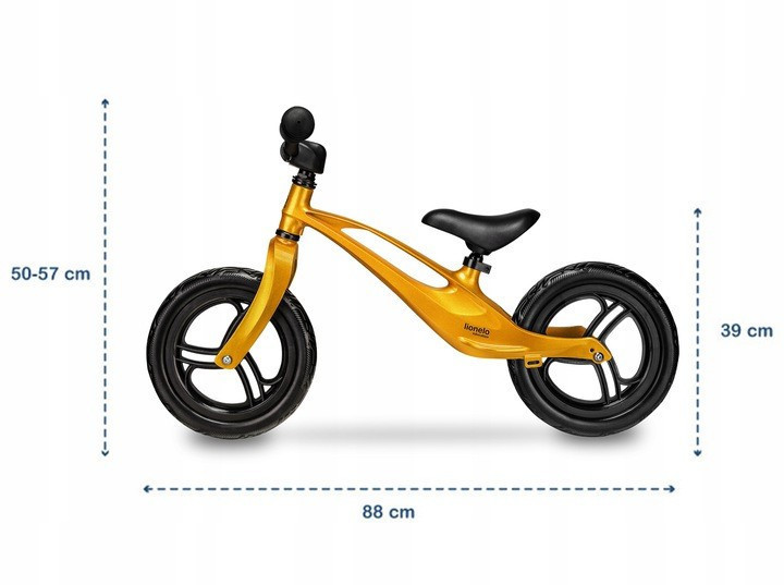 A Lionelo Bart futóbicikli váza elegáns, áramvonalas formájú, amely dinamikus, sportos stílust kölcsönöz neki. A keret középső részében lenyűgöző szabad hely található, amely a könnyű szállítására szolgál. Kis súlyának és nagy hordozhatóságának köszönhetően a futóbicikli hosszabb utazásokhoz is tökéletes választás.