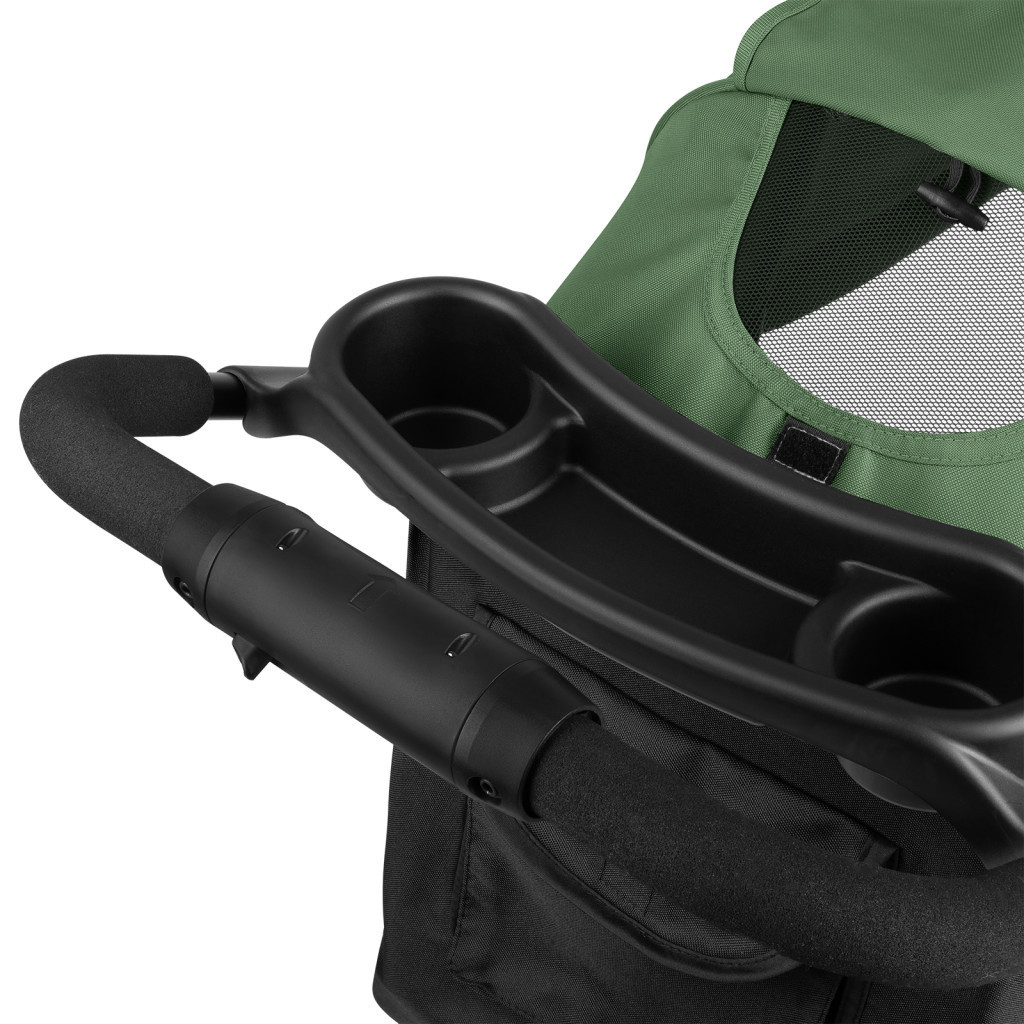 A hasznos tálcán van egy speciális palack vagy pohártartó és egy játékhely is. Ezen túlmenően, ez szolgálja a biztonságot.