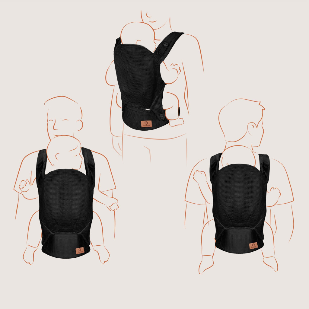 A hordozót a baba változó igényeit szem előtt tartva tervezték, három hordozási pozíciót kínálva: