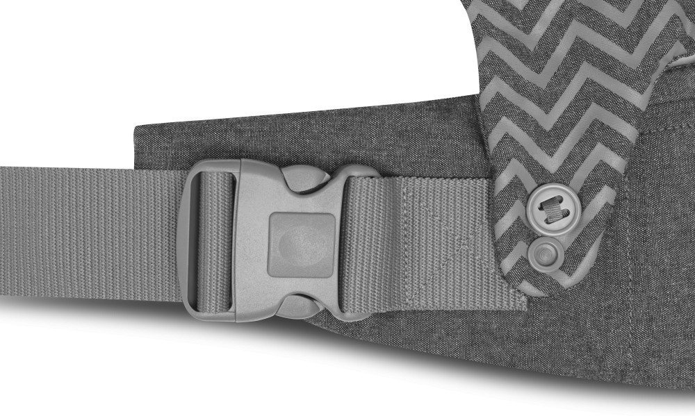 A széles csípőöv kettős csatvédelemmel van ellátva, amely minden helyzetben biztosítja a stabilitást.
