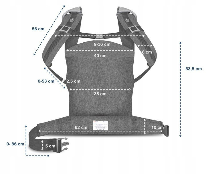 A hordozó a súly megfelelő elosztásával jelentősen megkönnyíti a szülő hátát, ennek köszönhetően hosszabb használat esetén is garantálja a kényelmet.