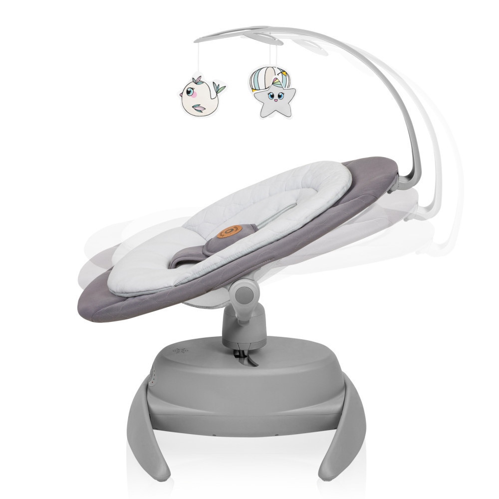 A Lionelo Mell egy ergonomikus, amelyet a babák számára terveztek születésüktől egészen addig, amíg el nem érik a 9 kg-os súlyt vagy megtanulnak felülni. A termék 3 egyedi ringatási mozdulatot biztosít, és 5 különböző ringatási sebesség közül választhat. Az EasyTurn 360°-ban elforgatható ülés lehetővé teszi a ringatási irány megváltoztatását és a szemkontaktus fenntartását a kicsivel. Gyermeke változó igényeit szem előtt tartva, a billenő 3 fokozatban állítható a háttámla dőlésszögéhez, és választható dönthető, félig dőlt és félig ülő helyzetek is. Az automatikus mozgásérzékelő azonnal aktiválja a zenét és a finom ringatást, amint a baba mocorogni kezd. A baba kényelméről a puha bambuszpárna gondoskodik, amely elősegíti az ergonomikus pozíciót. A baba szórakoztatása érdekében a rocker egy állítható játékrudat, valamint akár 12 előre betöltött dallamot és 2 természethangot tartalmaz. A termékhez Bluetooth-on keresztül külső eszközhöz is csatlakoztatható a kiválasztott zene lejátszásához.