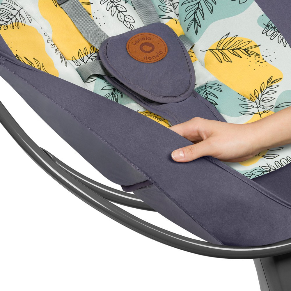 A Lionelo Ralf rocker-pattanó széles, megfelelően profilozott üléssel van felszerelve, a kisgyermek fejét pedig puha párna védi . Koszosodás esetén a huzat könnyen eltávolítható és mosható, maga a termék pedig könnyű súlyának köszönhetően könnyedén mozgatható szobáról szobára.
