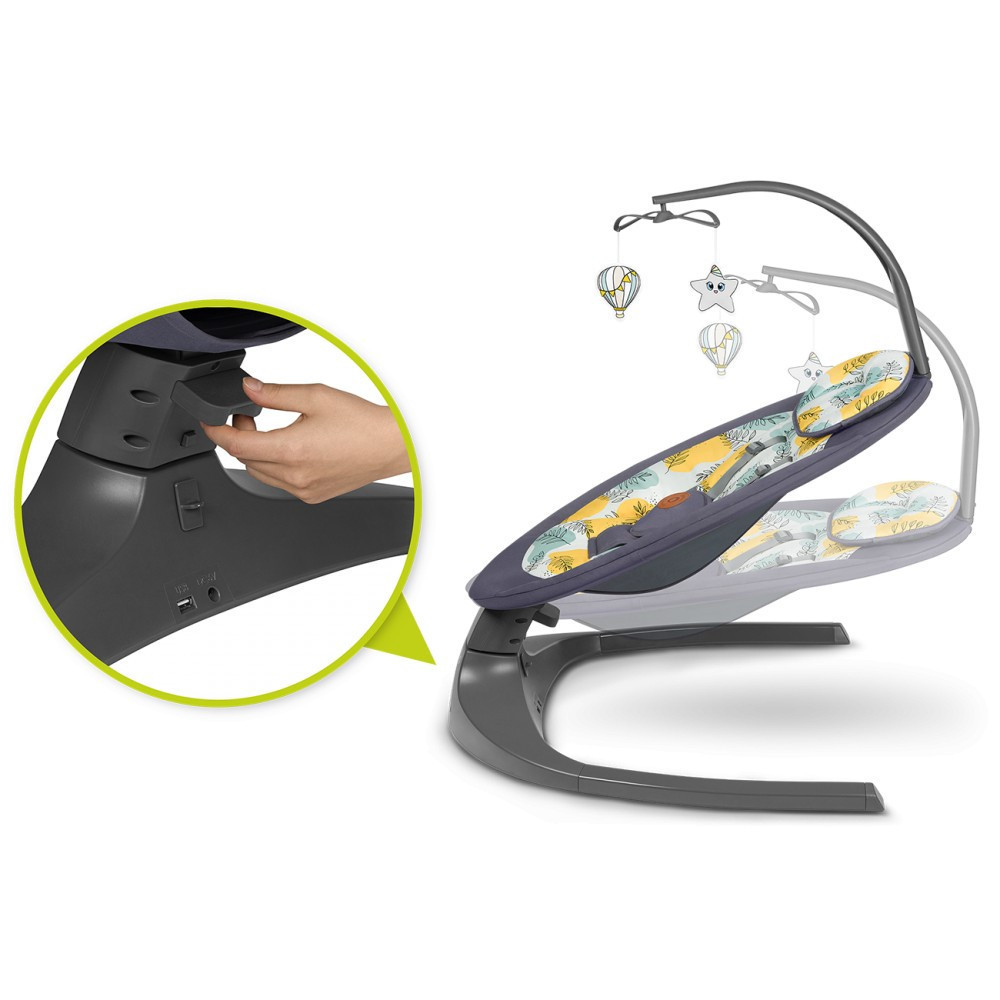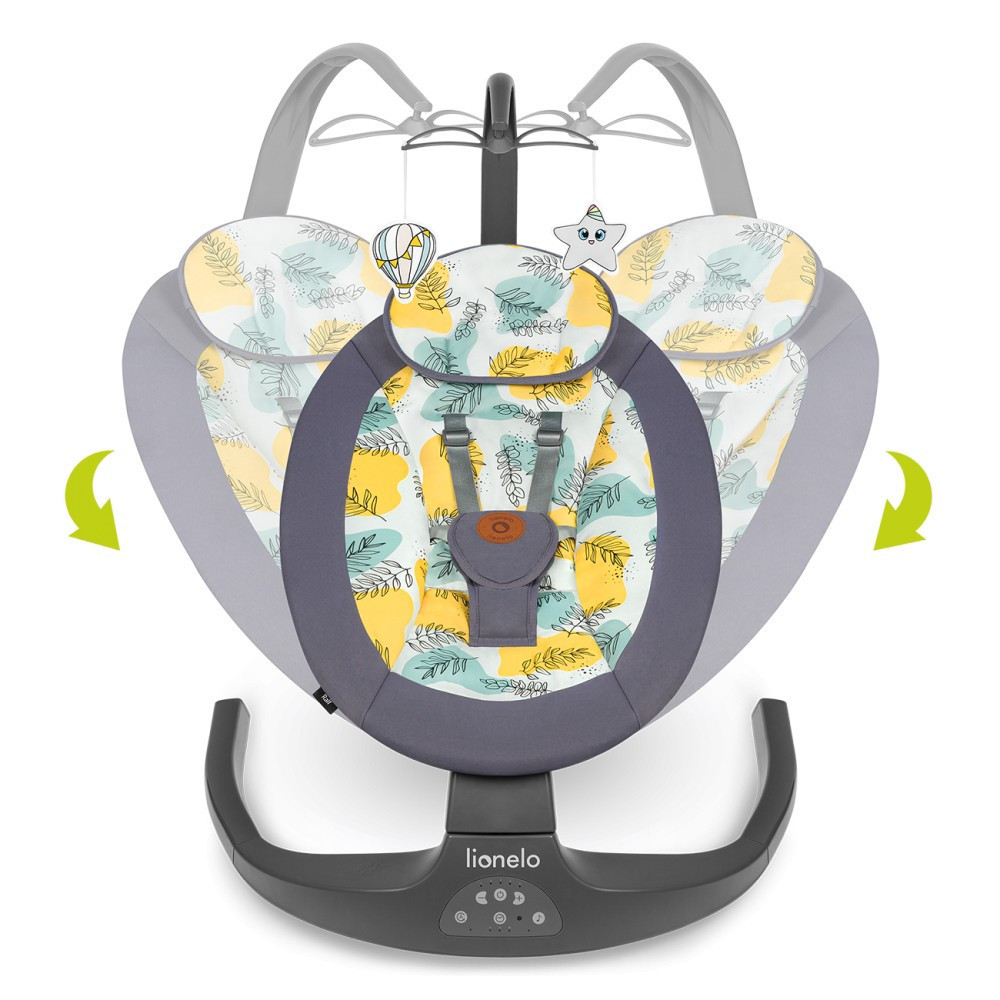 A Lionelo Ralf rocker-ugrálót a baba születésétől 9 kg-os súly eléréséig használhatja, vagy amíg el nem kezd önállóan felülni . A termék automatikus mozgásérzékelő funkcióval rendelkezik. Az érzékelő érzékeli a baba mozgását, és elkezdi ringatni, éppoly ösztönösen, mint a gondozója. A Lionelo Ralf rocker lengési opcióval rendelkezik, öt különböző sebességfokozattal. A ringató mozgás oldalra: jobbra-balra. A beépített időzítő lehetővé teszi, hogy három – 8, 15 vagy 30 perces – ringatási idő közül válasszon . Eközben a beépített zenedoboz 12 békés dallammal és levehető fejpánt 2 játékkal sikeresen elfoglalja a gyerkőcöt.