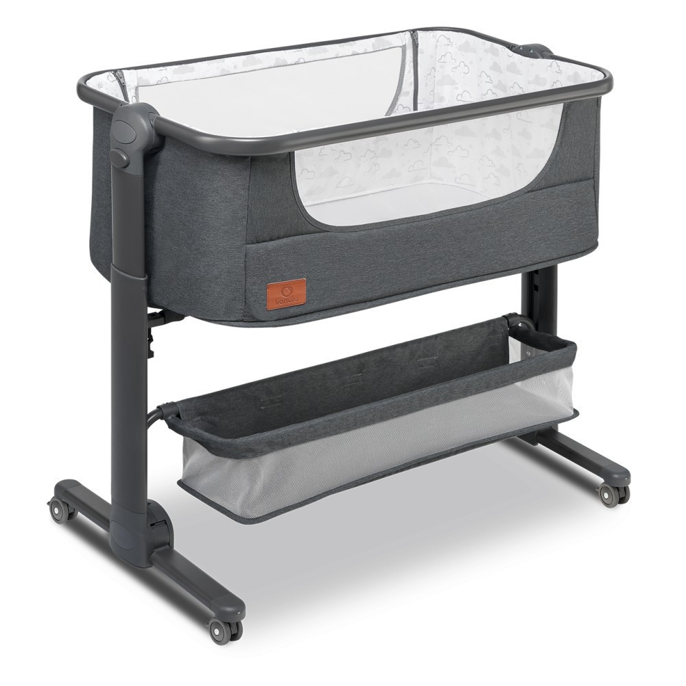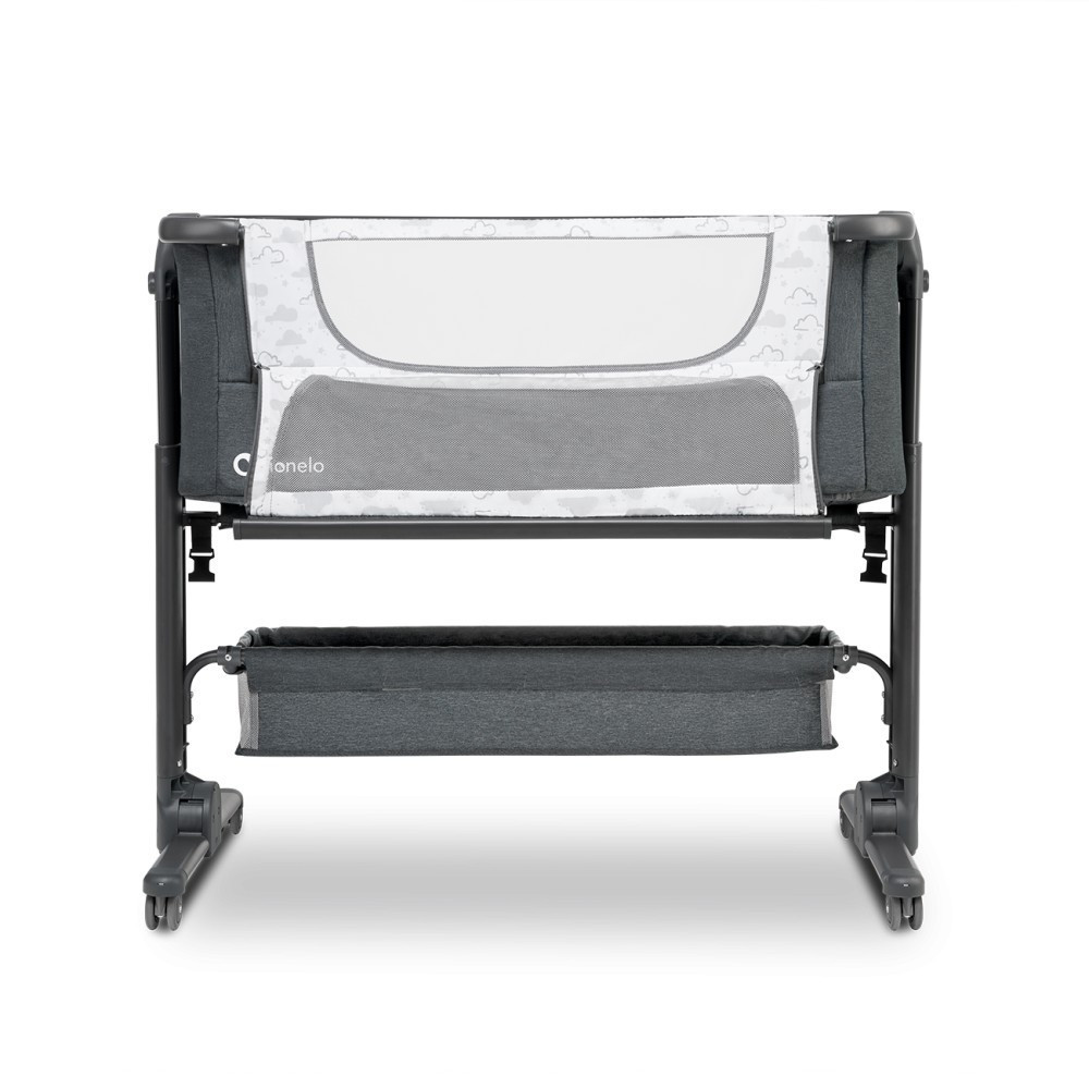 A cipzáras oldalfal lehetővé teszi, hogy folyamatosan figyeld gyermeked. A Timon kiságy a stabil elhelyezést biztosító hevederekkel és egy tágas kosárral van felszerelve a kisebb ápolási cikkek számára.