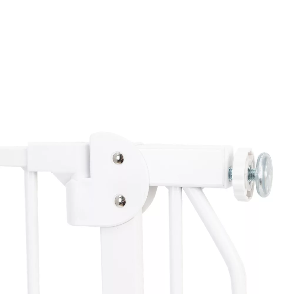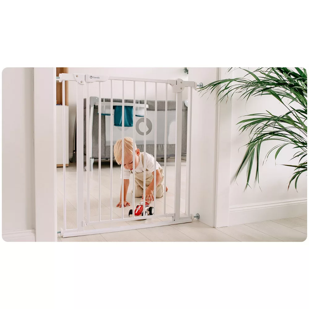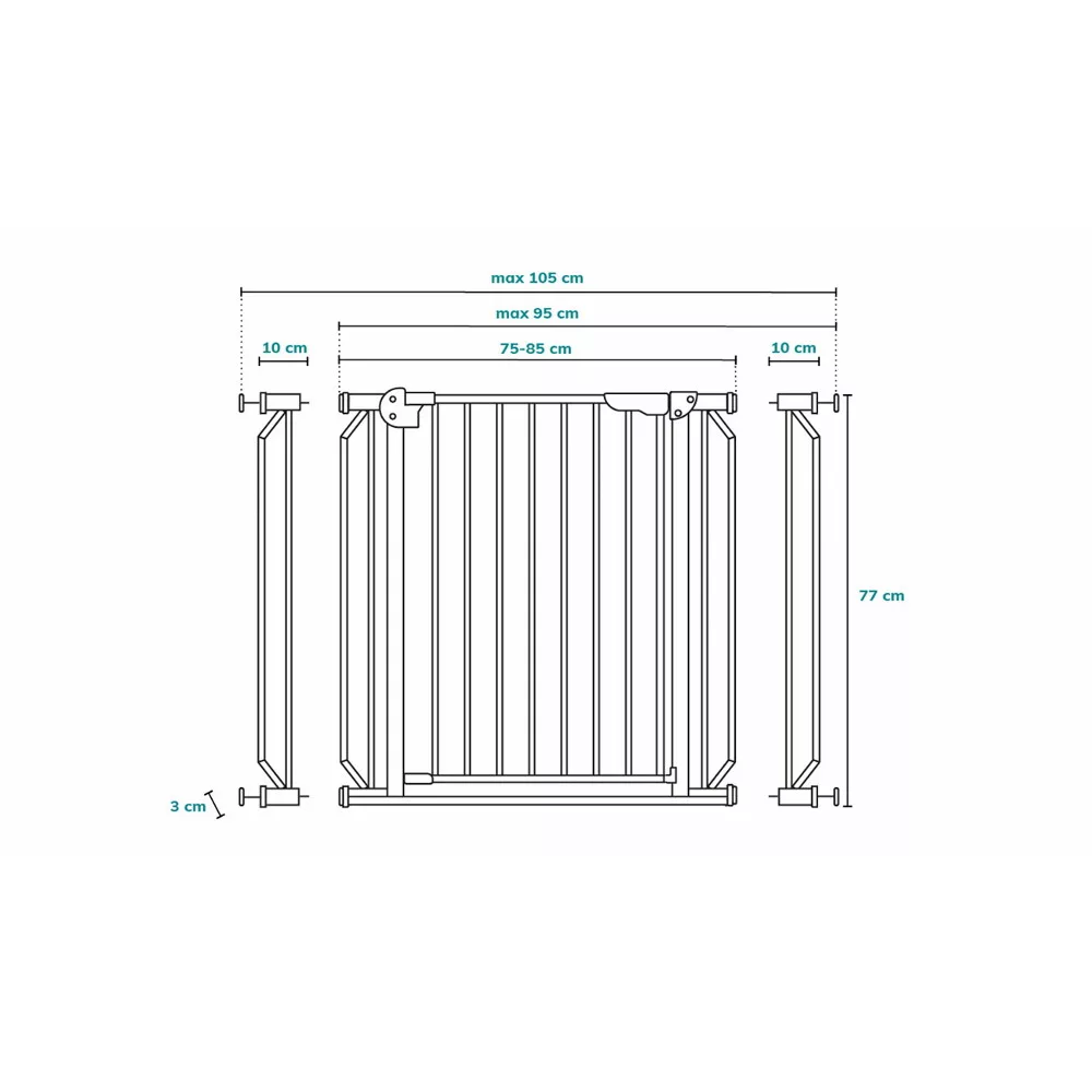 • Könnyed, egykezes nyitás. A nyitógomb megnyomását követõen kissé meg kell emelni a kaput, melyre a gyerekek nem képesek, így nagy biztonságot jelent. Önzáró mechanizmus.• 24 órás védelem! Érzékelõ szenzorral ellátott ajtórács, mely szürkületkor aktiválja a led fényforrást, mely megvilágítja a korlátot. A mûködéshez 1 db AAA elem szükséges.• Nem tartalmaz éles széleket, így sem a falon, sem emberben nem okozhat sérülést • 90 fokban nyitható mindkét irányban• Az ajtórácsok közötti távolság kb 5-6 cm.• Fúrás nélkül felszerelhetõ • Anyaga: fém• Méret: 77x75-105 cm• Szabvány: EN1930:2011
