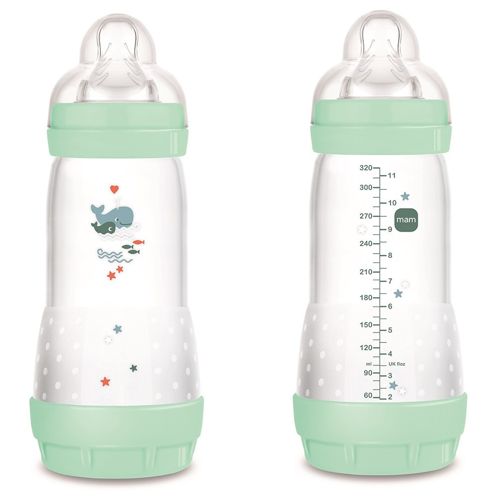 Üdvözlünk a fenntarthatóbb babatermékek új korszakában: Bio-körforgásos PPA fenntarthatóságot a következõ szintre emeljük.A bio-körforgásos PP ugyanazokat a nagyszerû elõnyöket kínálja, mint a fosszílis PP, a MAM magas szintû gyártási szabványait és sterilizálási követelményeit figyelembe véve.Mit lehet tudni a bio-körforgásos PP-rõl?Második generációs alapanyag: -új életet adunk egy használt anyagnak.-a bio-körforgásos PP (polipropilén) második generációs megújuló alapanyagból készül, -100%-ban visszavezethetõ bio-körforgásos nyersanyagokra.A 320 ml-es MAM Anti-Colic az ideális cumisüveg kisbabáknak: a babák saját tempójukban, teljesen ellazulva ihatnak.A MAM szabadalmaztatott, szelepes aljnak köszönhetõen a tej megszakítás nélkül tud folyni a cumisüvegbõl. Az üveg alján lévõ szellõzõlyukaknak köszönhetõen nem képzõdnek buborékok és hab az üvegen belül. Az édesanyák 80%-a megerõsítette a kevesebb kólikás hasfájást¹, és a babák élvezik a szoptatáshoz hasonló etetést².(¹Piackutatás – Ausztria 2011, 73 hasfájós babával tesztelve/USA 2010, 35 hasfájós babával tesztelve.²Orvosi tanulmány, Argentína 2012, 34 babával tesztelve.)A babák 94%-a elfogadta* a MAM etetõcumit, SkinSoft Szilikon felületének köszönhetõen. (*Piackutatás: 2009-2017, 1508 babával tesztelve).A MAM Anti-colic cumisüveg lecsavarható alja miatt könnyen tisztítható és egyedülálló önsterilizáló funkcióval is rendelkezik.A SkinSoft szilikon etetõcumi minden MAM cumisüveggel és Trainer tanulópohárral kompatibilis.Csapatmunka a maximális biztonságért: Csak az egészségügyi szakértõink jóváhagyása után állnak rendelkezésre termékeink a babák számára. További információ a www.mambaby.com oldalonHasználati információk: Önsterilizálás 3 egyszerû lépésben: Töltsön a szelepes aljba 20 ml vizet, helyezze bele az etetõcumit, tegye rá a cumisüveg testét, majd a védõkupakot. Melegítse mikrohullámú sütõben 3 percig! (lásd a használati utasítást)Minden MAM termék BPA és BPS mentes anyagból készül.Életkori ajánlás: 4. hónaptól- Fontos! A termék egészségvédelmi és higiéniai terméknek minõsül. Amennyiben a csomagolás felbontásra került, vagy a kipróbálás jelei látszódnak a terméken, úgy a 14 napos elállási jog érvényét veszíti a 45/2014. (II. 26.) korm. rendelet 29. § (1) bekezdése alapján.