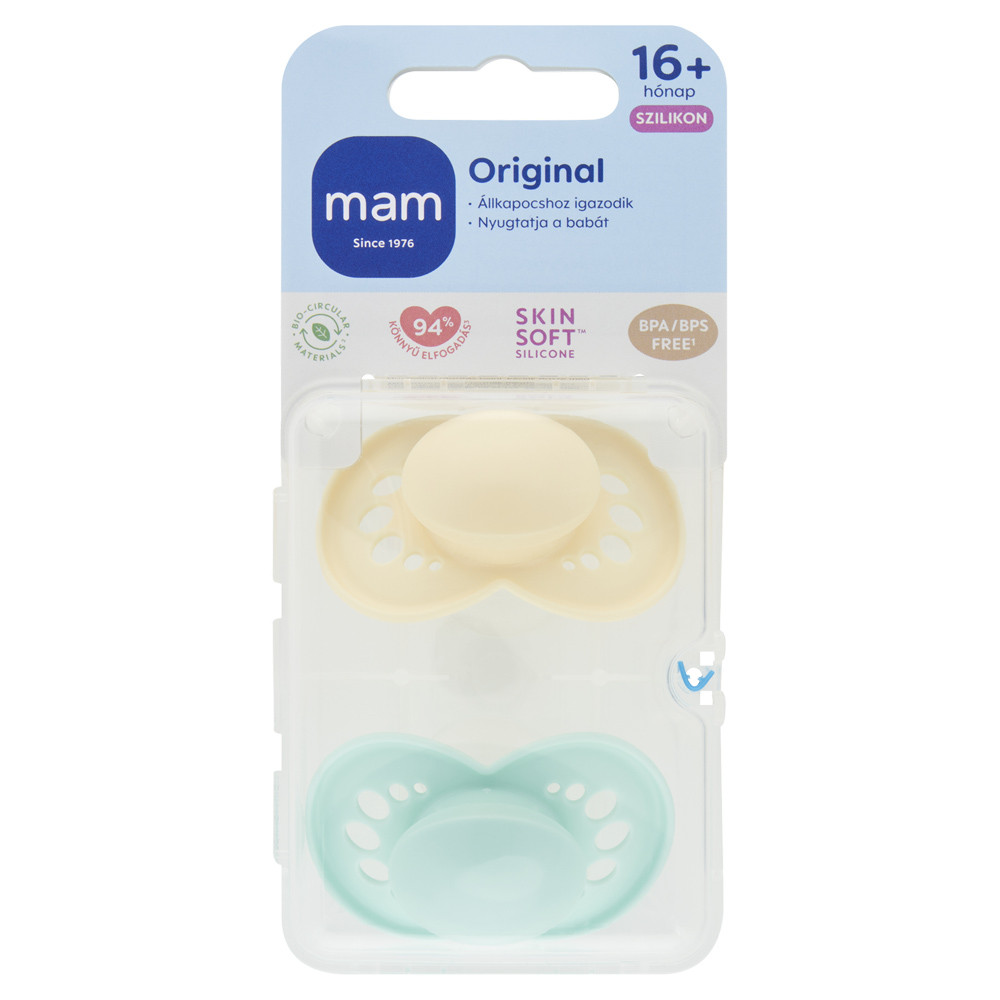 Üdvözlünk a fenntarthatóbb babatermékek új korszakában: Bio-körforgásos PPA fenntarthatóságot a következõ szintre emeljük.A bio-körforgásos PP ugyanazokat a nagyszerû elõnyöket kínálja, mint a fosszílis PP, a MAM magas szintû gyártási szabványait és sterilizálási követelményeit figyelembe véve.Mit lehet tudni a bio-körforgásos PP-rõl?Második generációs alapanyag: -új életet adunk egy használt anyagnak.-a bio-körforgásos PP (polipropilén) második generációs megújuló alapanyagból készül, -100%-ban visszavezethetõ bio-körforgásos nyersanyagokra.Szimmetrikus formájú szívóka, amely mindig tökéletesen illik a baba szájábaGyorsan & egyszerûen megfogható gombbal, amelyre könnyen rácsatolható a cumitartó szalag.Hajlított pajzs a maximális kényelemért. Bõrbarát a nagy szellõzõlyukaknak és az egyedülálló dudoros MAM belsõ oldalnak köszönhetõen.A MAM cumikat gyermekorvosokkal, fogorvosokkal és fogszabályozó szakemberekkel folytatott egyedülálló csapatmunkával fejlesztjük a kezdetektõl fogva.- klímas-emleges cumi- ortodontikus- megnyugtatja és megvigasztalja a babát- biológiailag megújuló anyagból készült- a nagy méretû levegõnyílásoknak és a belsõ felén kialakított egyedülálló MAM mélyedéseknek köszönhetõen kíméli a bõrt.- praktikus sterilizáló- és szállítódobozban szállítjuk, így kényelmesen és idõtakarékosan sterilizálható a mikrohullámú sütõben- fogbarát1. PAJZSTermészetesen biztonságos, tartós, biológiailag megújuló anyagból. A nagy méretû levegõnyílásoknak és a belsõ felén kialakított egyedülálló MAM mélyedéseknek köszönhetõen kíméli a bõrt.2. GOMBGyorsan és könnyen megfogható. Egyszerûvé teszi a cumicsíptetõ felszerelését.3. SZÍVÓKAFogorvosokkal együttmûködve fejlesztettük ki, hogy segítsük a fogak egészséges fejlõdését. Lapos, szimmetrikus forma, mindig tökéletesen illik a baba szájába.4. SKINSOFTTM SZILIKONA babák könnyen elfogadják. Az ismerõs érzésért. A rendelt színt a megjegyzés mezõbe kérjük feltüntetni!- Fontos! A termék egészségvédelmi és higiéniai terméknek minõsül. Amennyiben a csomagolás felbontásra került, vagy a kipróbálás jelei látszódnak a terméken, úgy a 14 napos elállási jog érvényét veszíti a 45/2014. (II. 26.) korm. rendelet 29. § (1) bekezdése alapján.