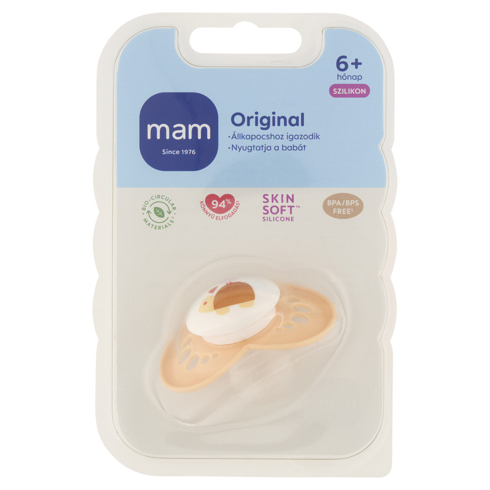 Üdvözlünk a fenntarthatóbb babatermékek új korszakában: Bio-körforgásos PPA fenntarthatóságot a következõ szintre emeljük.A bio-körforgásos PP ugyanazokat a nagyszerû elõnyöket kínálja, mint a fosszílis PP, a MAM magas szintû gyártási szabványait és sterilizálási követelményeit figyelembe véve.Mit lehet tudni a bio-körforgásos PP-rõl?Második generációs alapanyag: -új életet adunk egy használt anyagnak.-a bio-körforgásos PP (polipropilén) második generációs megújuló alapanyagból készül, -100%-ban visszavezethetõ bio-körforgásos nyersanyagokra.Különleges MAM formatervezés.MAM SkinSoft szilikon szívóka, amely a bõrhöz hasonló, ismerõs érzést nyújt és a babák 94%-a elfogadja (piackutatás 2010-2018, 1383 babával tesztelve). Szimmetrikus formájú szívóka, amely mindig tökéletesen illik a baba szájábaGyorsan & egyszerûen megfogható gombbal, amelyre könnyen rácsatolható a cumitartó szalag.Hajlított pajzs a maximális kényelemért. Bõrbarát a nagy szellõzõlyukaknak és az egyedülálló dudoros MAM belsõ oldalnak köszönhetõen.A MAM cumikat gyermekorvosokkal, fogorvosokkal és fogszabályozó szakemberekkel folytatott egyedülálló csapatmunkával fejlesztjük a kezdetektõl fogva.Csapatmunka a maximális biztonságért: Csak az egészségügyi szakértõink jóváhagyása után állnak rendelkezésre termékeink a babák számára. Anyag: szilikonMinden MAM termék BPA és BPS mentes anyagból készül.Életkori ajánlás: 6. hónaptól- Fontos! A termék egészségvédelmi és higiéniai terméknek minõsül. Amennyiben a csomagolás felbontásra került, vagy a kipróbálás jelei látszódnak a terméken, úgy a 14 napos elállási jog érvényét veszíti a 45/2014. (II. 26.) korm. rendelet 29. § (1) bekezdése alapján.