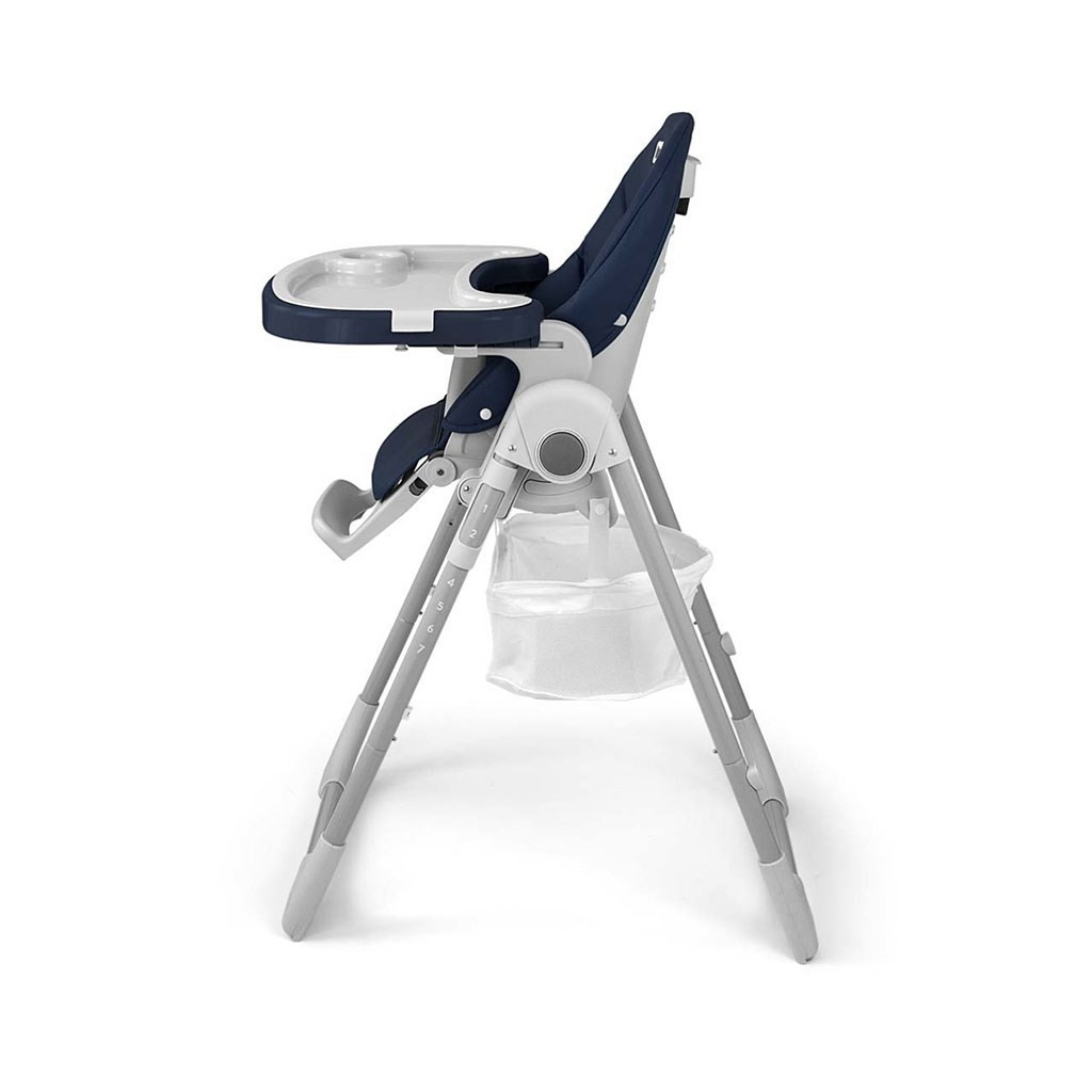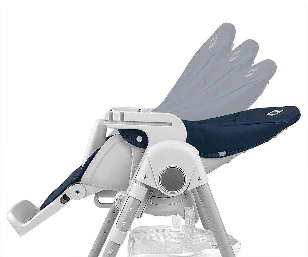 A szék kárpitja eco bőrből készült, és puha szűkítő betéttel is rendelkezik a legkisebbek számára. A gyermek biztonsága érdekében 5 pontos állítható övvel és további kicsúszásgátlóval van felszerelve. A háttámla hátulján van egy fogantyú a tálca felakasztására. A háttámla és a lábtámasz lehajtható. Az ülés 7 fokban emelhető vagy süllyeszthető, a lábak pedig beépített gumikerekekkel rendelkeznek. A teljes szerkezet könnyen és simán összecsukható.