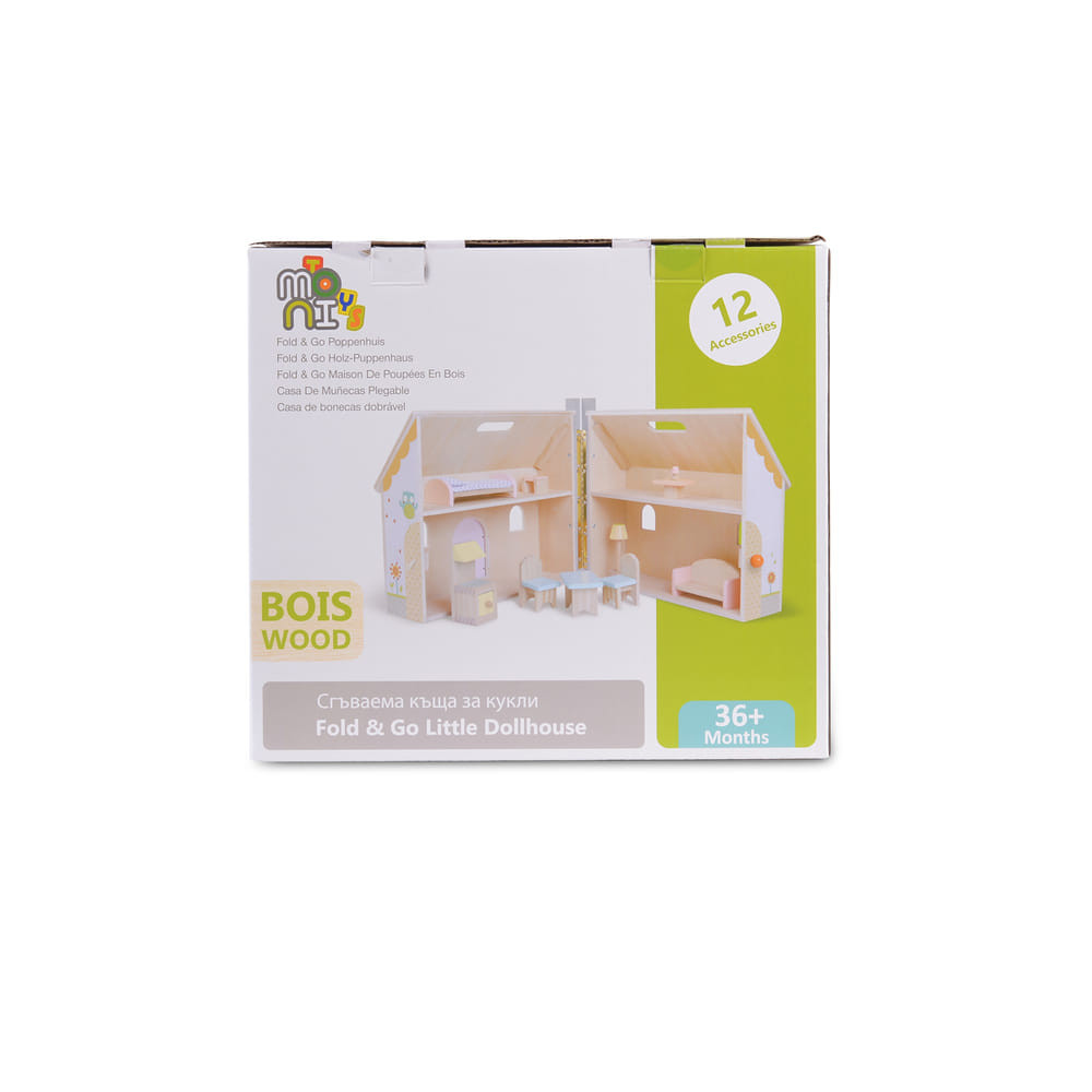 Moni Toys összecsukható fa babaház:
