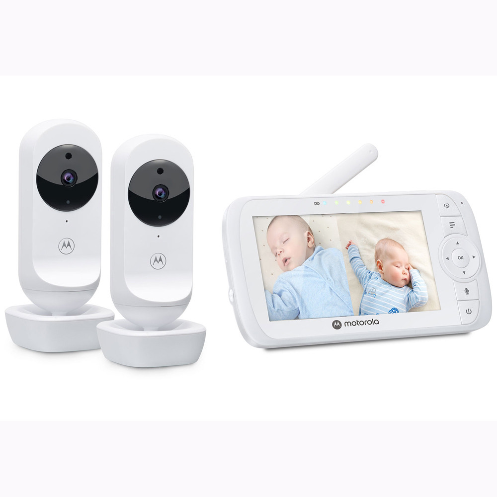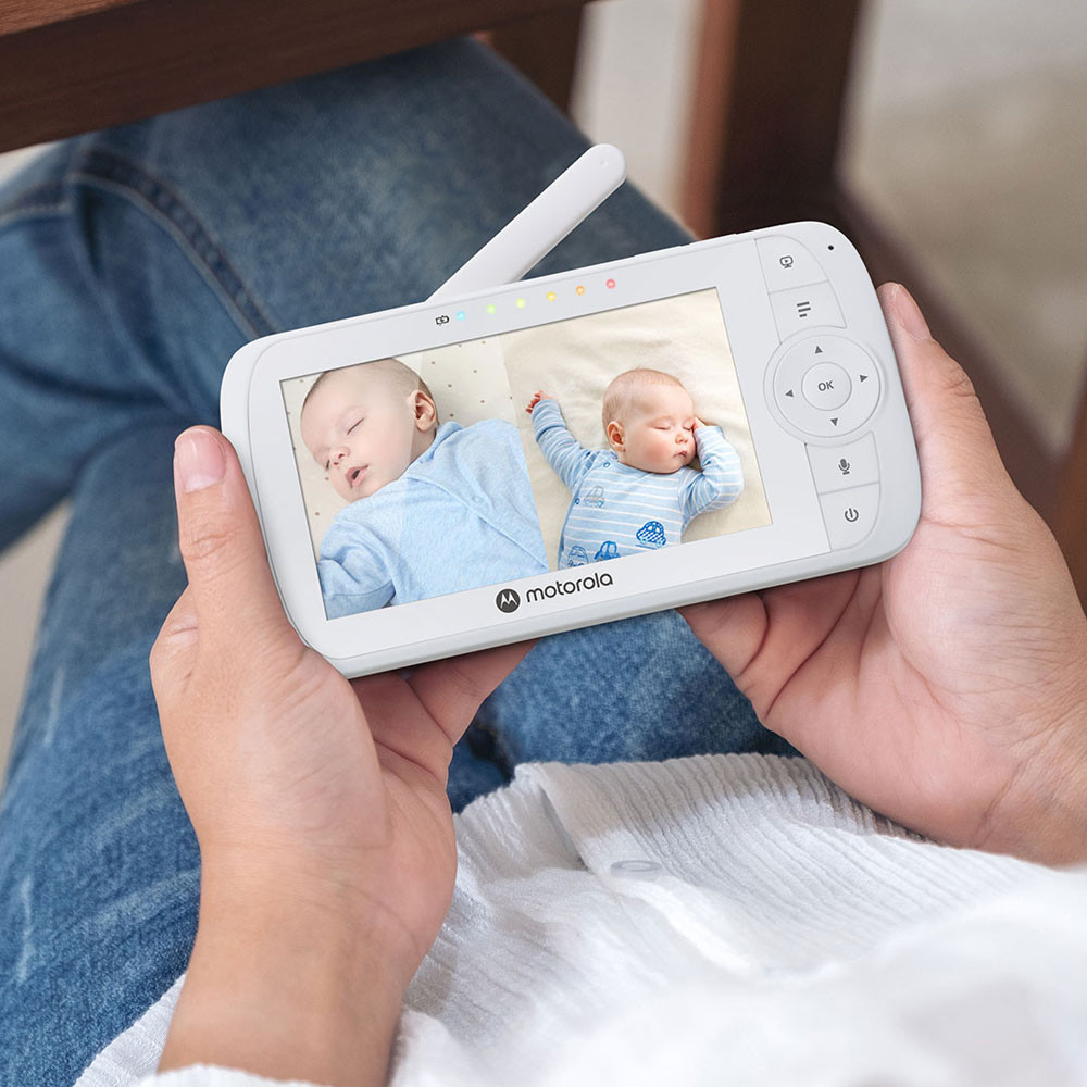 Ismerje meg a VM35-2 digitális babamonitor rendkívül praktikus és megbízható funkcióit, amelyek segítségével könnyedén figyelemmel kísérheti a babát bárhol és bármikor.Az 5" átlójú színes LCD kijelzõ élénk és részletes képet biztosít, így könnyen láthatja a babát akár éjjel is. A digitális készülék garantálja a jó minõségû és biztonságos adatátvitelt, hogy mindig tiszta hangot és képet kapjon.A manuális kamera lehetõvé teszi, hogy Ön irányítsa a kamera látószögét, így szükség szerint beállíthatja azt és követheti a baba mozgását. A digitális zoom funkció segítségével közelrõl is megfigyelheti a részleteket. Az automata infravörös éjjellátó mód pedig biztosítja a képet még sötétben is.Az LED-es hangszint-kijelzõ és az állítható hangerõ segítségével könnyen követheti a babahangokat, és beállíthatja a megfelelõ hangerõszintet. A lemerülõ akku figyelmeztetés pedig idõben jelez, ha a szülõi egység akkumulátor töltöttsége alacsony.A szobahõmérséklet kijelzése lehetõvé teszi, hogy mindig figyelemmel kísérje a baba környezetét, és szükség esetén reagáljon rá. A kétirányú kommunikáció lehetõvé teszi, hogy Ön is beszéljen a babával, pl. megnyugtathassa õt, vagy alváshoz bátorítsa. A babaõr altatódalok funkciója segíti a babát a nyugodt alvásban, és kényelmet biztosít az éjszakai órákban.A kamera elektromos hálózatról mûködik, míg a szülõi egység hordozható, azaz a szülõi egységet lehet hálózatról vagy az újratölthetõ akku-packról is mûködtetni (amely tartozék). Ez lehetõvé teszi, hogy mindig és bárhol könnyedén használhassa a babamonitor rendszert.A Motorola VM35-2 babamonitor rendszer ideális választás minden szülõ számára, akik két gyermeküket is figyelemmel kísérik, vagy egyszerre 2 helyiséget tartanak szemmel, odafigyelést és kényelmet szeretnének biztosítani kisbabájuk és önmaguk számára.