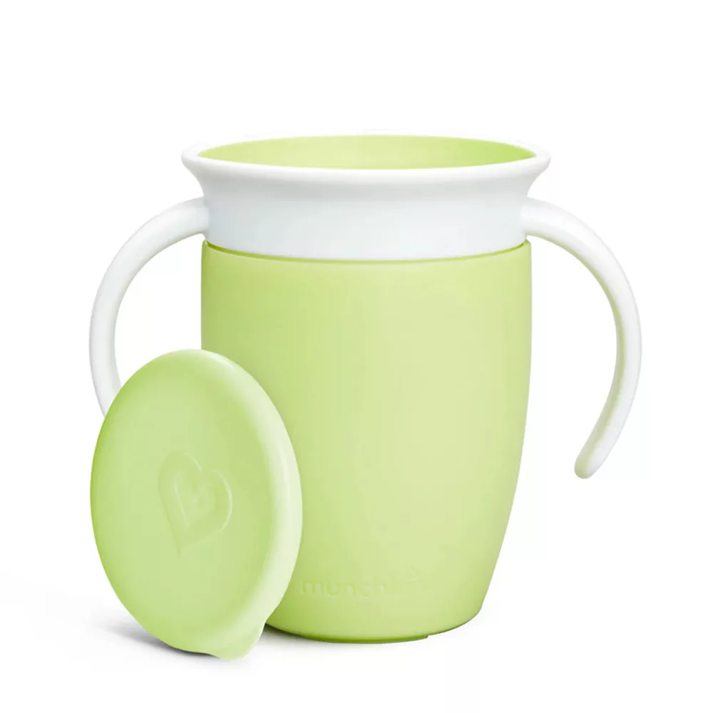 A Munchkin Miracle Cup egy 360 fokos itatópohár, amelynek peremérõl bárhonnan ihat a gyermek, nem kell aggódni a csöpögés miatt. Speciális szelepes teteje használat után automatikusan visszazár.Fõbb jellemzõk:•100% szivárgás-, és csöpögésmentes:A tetõ automatikusan zár, amint gyermeke abbahagyta az ivást, így nem lötyög ki sem a pelenkázótáskában, sem az éjjeliszekrényen, és még az éppen inni tanuló kisebb gyermekünkre sem. •360 fokos kialakítás – bárhonnan ihat a gyermek•Könnyen használható: Nincsenek se szívószálak, se ivócsõrõk és támogatja a gyerekek normál pohárra szokását.•Egyszerû tisztítás: mindössze 3 részbõl áll és szelepe eltávolítható, így nagyon könnyen tisztán tartható•Fogorvosok által javasolt: A perem körüli részekbõl való ivás, akárcsak egy hagyományos pohárnál, segít a gyermek szájának normál izomfejlõdésében.Technikai jellemzõk:•207ml ûrtartalom•Életkornak megfelelõ folyadékáramlási sebesség•BPA-mentes •Mosogatógép felsõ rácsán mosható•6 hónapos kortól ajánlott- Fontos! A termék egészségvédelmi és higiéniai terméknek minõsül. Amennyiben a csomagolás felbontásra került, vagy a kipróbálás jelei látszódnak a terméken, úgy a 14 napos elállási jog érvényét veszíti a 45/2014. (II. 26.) korm. rendelet 29. § (1) bekezdése alapján.
