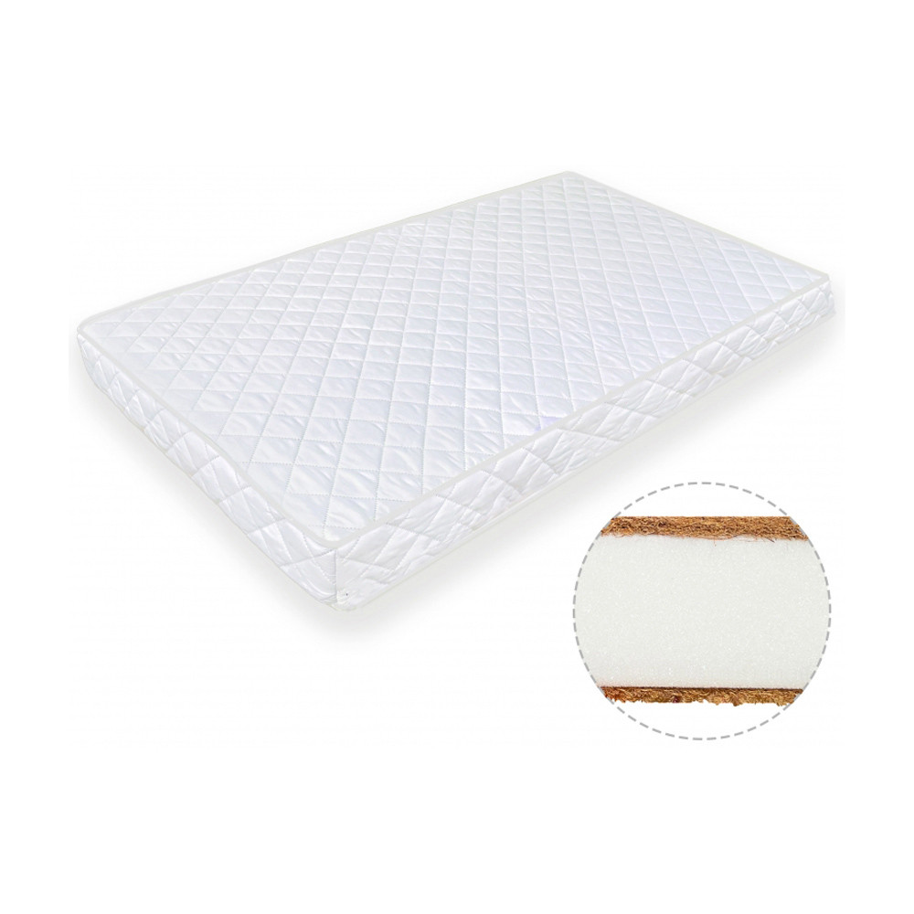 KÓKUSZ - HAB - KÓKUSZMATRAC 70x140 (10 cm-es)A kiságy elengedhetetlen kelléke a kókuszmatrac!A Kókusz-hab-kókusz matrac úgynevezett szendvics szerkezetû matracKókuszmatracaink új köntösbe kerültek azáltal, hogy kókuszrostok szálai latexet tartalmazó növényi nedvvel vannak átitatva, ami által rugalmasabb, jobb légáteresztõ funkciót biztosítanak használóik számára. Ezen újítások elõsegítik a baba kényelmét és védelmét. A matrac légáteresztõ funkciója kiemelten fontos a babák számára, ehhez pedig bátran ajánljuk a légzésfigyelõnket, melyet webáruházunkban szintén megvásárolhat.A matrac élei merevítettek, ezáltal jobb tartást biztosítanak a használói számára. A kókuszmatrac steppelt, lecipzározható, mosható, könnyen tisztítható huzattal rendelkezik.A kókuszmatrac elõnyei: - Stabil fekvõfelület, amely tökéletes alátámasztást nyújt gyermeke gerincének- Tökéletesen megtámasztja a kisbaba gerincét, ezáltal megakadályozza a kisgyermekkorban kialakuló gerincproblémákat- Kiválóan szellõzik, a levegõ a rostos szerkezetet szabadon átjárja- Könnyen tisztítható: a kókuszmatrac bõ, langyos vízzel átmosható. A huzat semleges mosószerrel tisztítható- Javasoljuk a matracot fix lécrácsra helyezni, mely biztosítja a tökéletes szellõzést. Ha zárt lemezre kerül a matrac, akkor legalább hetente felállítva szellõztetni kellSzállítási idõ: megrendeléstõl számított 2-5 hét!