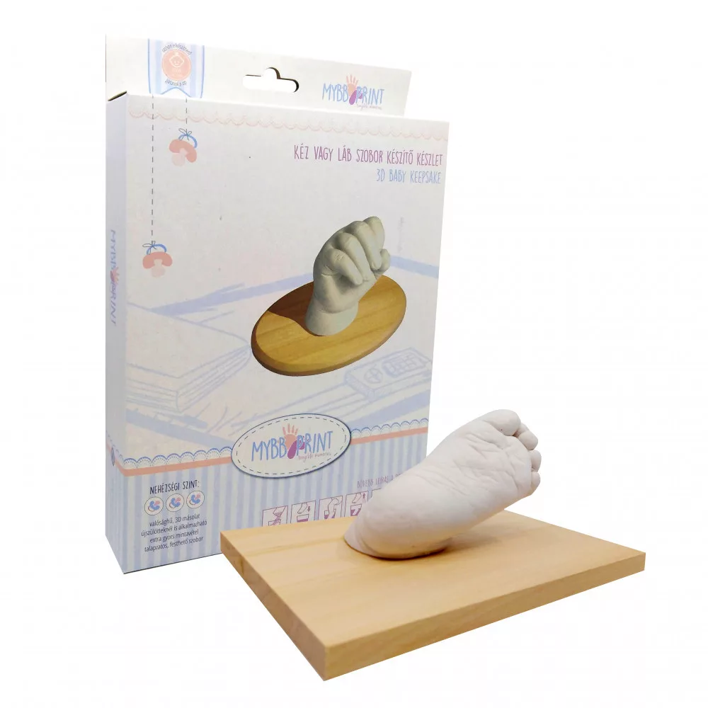 Használata egyszerû. A mintalevevõ port vízzel összekeverjük. Ebbõl egy tejföl szerû illatos és langyos massza lesz. Ebbe merítjük a gyermek kezét vagy lábát. 30 másodperc alatt az anyag gumi állagúvá köt, melybõl - mint egy gumicsizmából - könnyedén kihúzható a végtag. Ezután gipszet keverünk és kiöntjük az így kapott mintát. 24 óra múlva az öntõformát szétszakítva kezünkben tarthatjuk a kész szobrot.0-3 éves korig 1 szoborhoz tartalma:1 csomag szuper gyorsan kötõ mintalevevõ anyag1 csomag szobrászati gipsz az öntéshezkeverõ lapátfa talapzathasználati utasítás a biztos siker érdekébenKreatív egyedi gipsz kéz láb lenyomat, szobor készíthetõ akár pár hetes gyerekekrõl, babáról is.