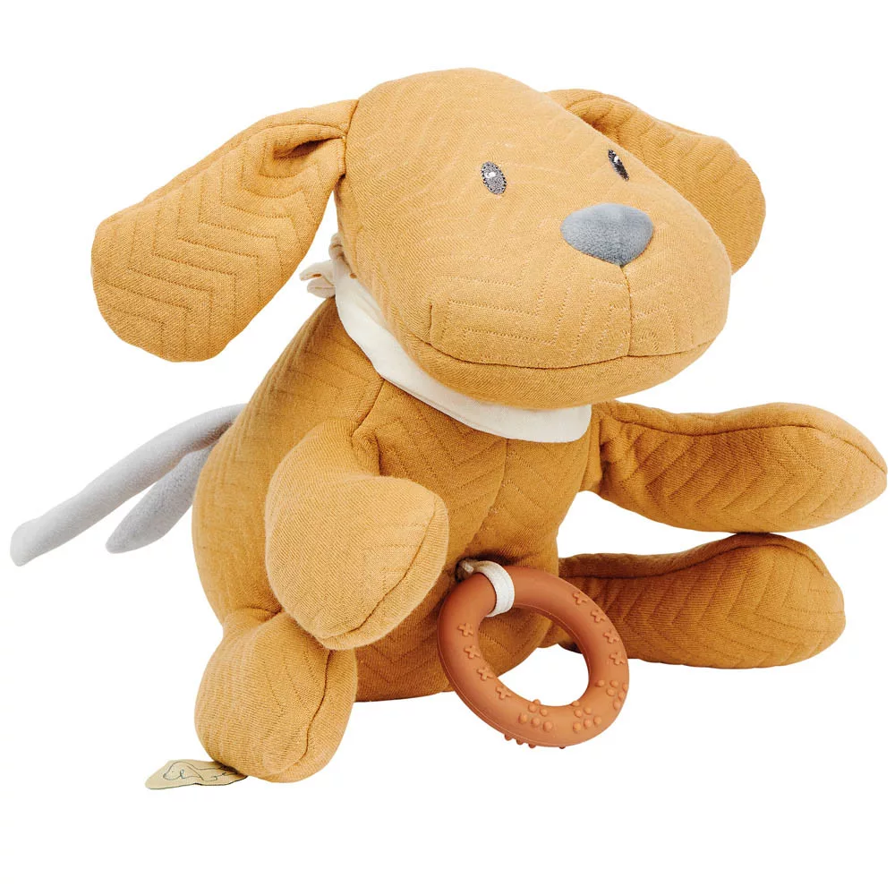 Az aranyos bújós Charlie kutyus csinos bundájával világszerte meghódítja az újszülöttek szívét. Az imádnivaló kutya számtalan megfogási lehetõséget kínál – beleértve a füleket, a mancsokat, a farkat vagy a tartós szilikongyûrût –, ezáltal elõsegíti a tapintásérzék és a motorikus készségek fejlõdését. A játékban lévõ zenélõ egység gyengéd dallamaival a szükséges megnyugvást is megadja gyermekének. A hátul lévõ két zsinórral a bújós játékot a kiságyhoz vagy a babakocsihoz is könnyedén fel lehet kötni.- csinos, bújós kutya aranyos fülekkel, mancsokkal és farokkal a megfogáshoz- beépített zenélõ egység lágy hangokkal- mérete: kb. 30cm- alapanyag: 45% pamut 55% poliészter- könnyû kezelés: kézi tisztítás