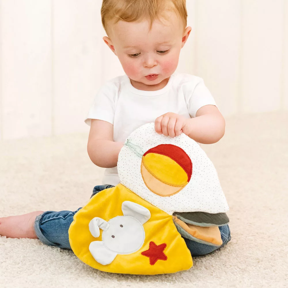 Az imádnivaló készségfejlesztõ puha plüss könyv tökéletes játszótárs babádnak minden kalandja során. Színes képei fejleszti a baba képzelõerejét. Puha kellemes tapintású. A puha plüss könyv számos megragadható és érinthetõ részletet kínál, arra ösztönzik a gyermeket, hogy nyújtsa ki a kezét, és fogja meg õket. Ezenkívül a könyvben elhelyezett finoman susogó és nyikorgó elemek fejlesztik a baba hallását, míg az anyagok különbözõ textúrái támogatják az észlelést. A lapozáskor felfedezhetõ tükör és tevékenységek extra szórakozást nyújtanak a babának.- aranyos plüss borító- sok felfedezésre váró tevékenység- puha és kényelmes anyag- könnyen kezelhetõ: kézzel moshatóMérete: kb.: 15cmAnyaga: 100% poliészter