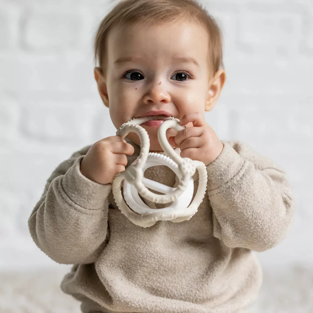 Szilikon rágóka érdes felülettel az íny masszírozásához és a fogfájás enyhítéséhez