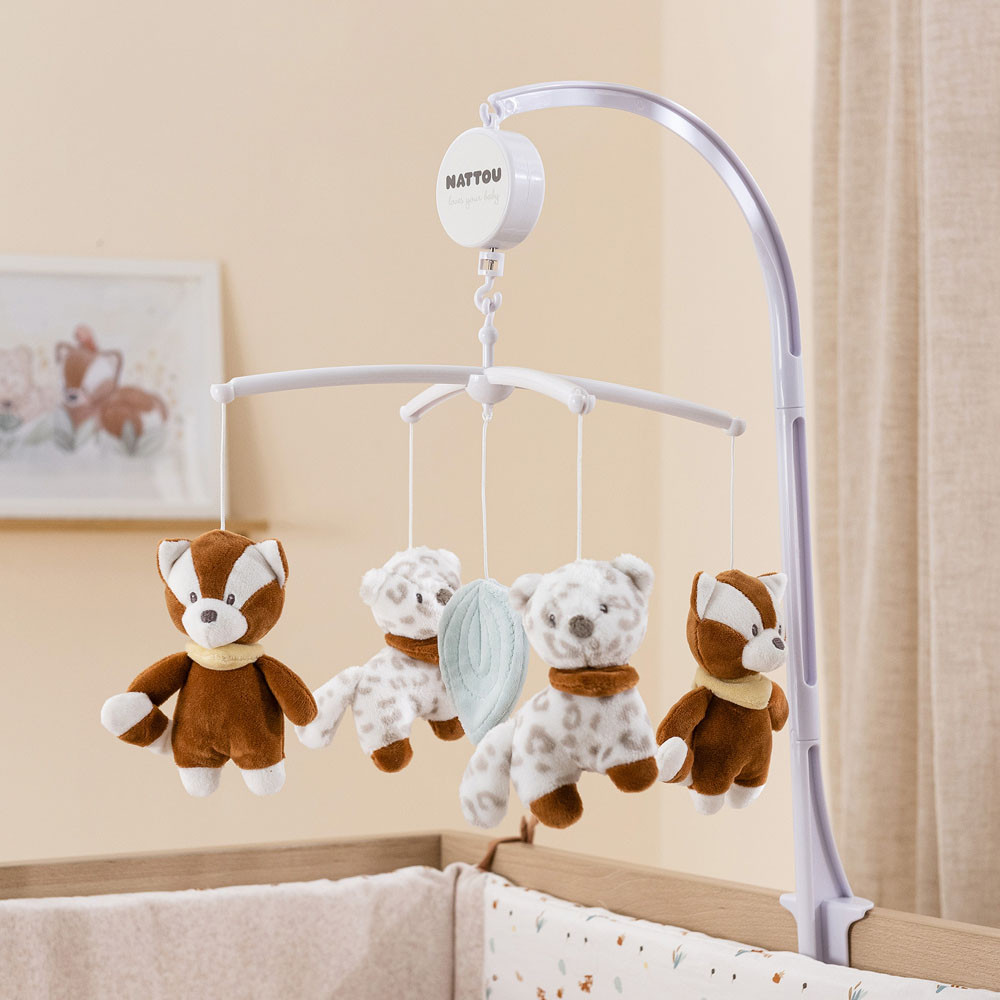 Az imádnivaló zenélõ-forgó, aranyos bújós figuráival – amelyek finoman forognak és mozognak az altatódal ritmusára – nyugodt alvást és édes álmokat biztosít. A zenélõ-forgó egyszerûen és biztonságosan rögzíthetõ a kiságyhoz, bölcsõhöz vagy a járókához, a figurák pedig könnyen eltávolíthatók és mosógépben moshatók.- ideális a hallás és a vizuális észlelés elõsegítésére- a felhúzható zenélõ-forgó a legtöbb kiságyhoz tökéletesen illeszkedik- a lelógó játékok és a dallam segíti elaludni a babát- puha, pamut anyagból- a játékok könnyen eltávolíthatóak a mosáshozMérete: kb. 37x31x9cmAnyaga: 100% poliészter, mûanyag