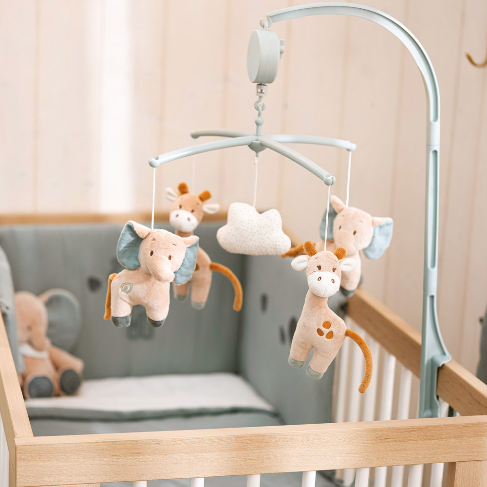 Az imádnivaló zenélõ-forgó, aranyos bújós figuráival – amelyek finoman forognak és mozognak az altatódal ritmusára – nyugodt alvást és édes álmokat biztosít. A zenélõ-forgó egyszerûen és biztonságosan rögzíthetõ a kiságyhoz, bölcsõhöz vagy a járókához, a figurák pedig könnyen eltávolíthatók és mosógépben moshatók.- ideális a hallás és a vizuális észlelés elõsegítésére- a felhúzható zenélõ-forgó a legtöbb kiságyhoz tökéletesen illeszkedik- a lelógó játékok és a dallam segíti elaludni a babát- puha, pamut anyagból- a játékok könnyen eltávolíthatóak a mosáshozMérete: kb. 37x31x9cmAnyaga: 100% poliészter, mûanyag