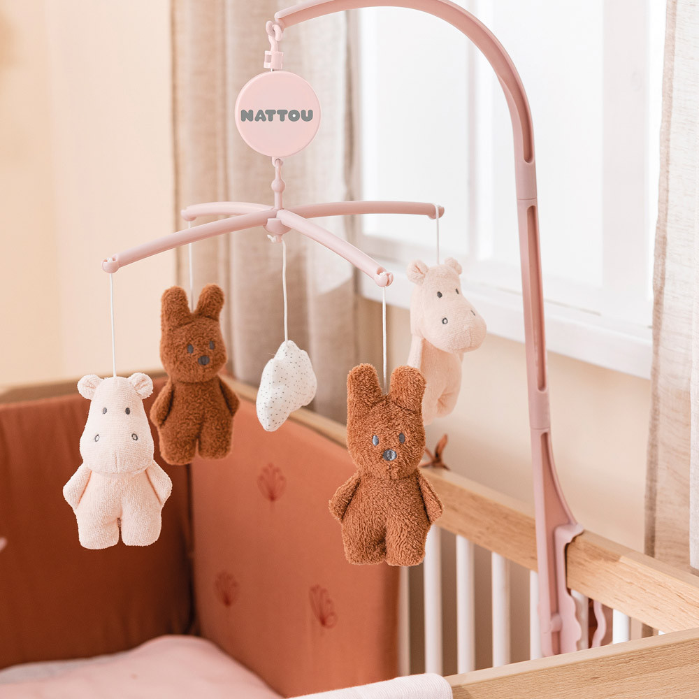 Az imádnivaló zenélõ-forgó, aranyos bújós figuráival – amelyek finoman forognak és mozognak az altatódal ritmusára – nyugodt alvást és édes álmokat biztosít. A zenélõ-forgó egyszerûen és biztonságosan rögzíthetõ a kiságyhoz, bölcsõhöz vagy a járókához, a figurák pedig könnyen eltávolíthatók és mosógépben moshatók.- ideális a hallás és a vizuális észlelés elõsegítésére- a felhúzható zenélõ-forgó a legtöbb kiságyhoz tökéletesen illeszkedik- a lelógó játékok és a dallam segíti elaludni a babát- puha, pamut anyagból- a játékok könnyen eltávolíthatóak a mosáshozMérete: kb. 37x31x9cmAnyaga: 100% poliészter, mûanyag
