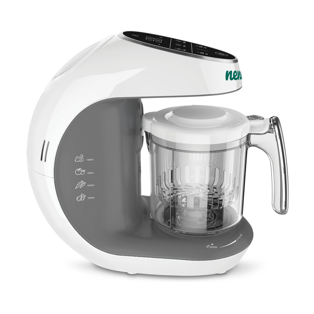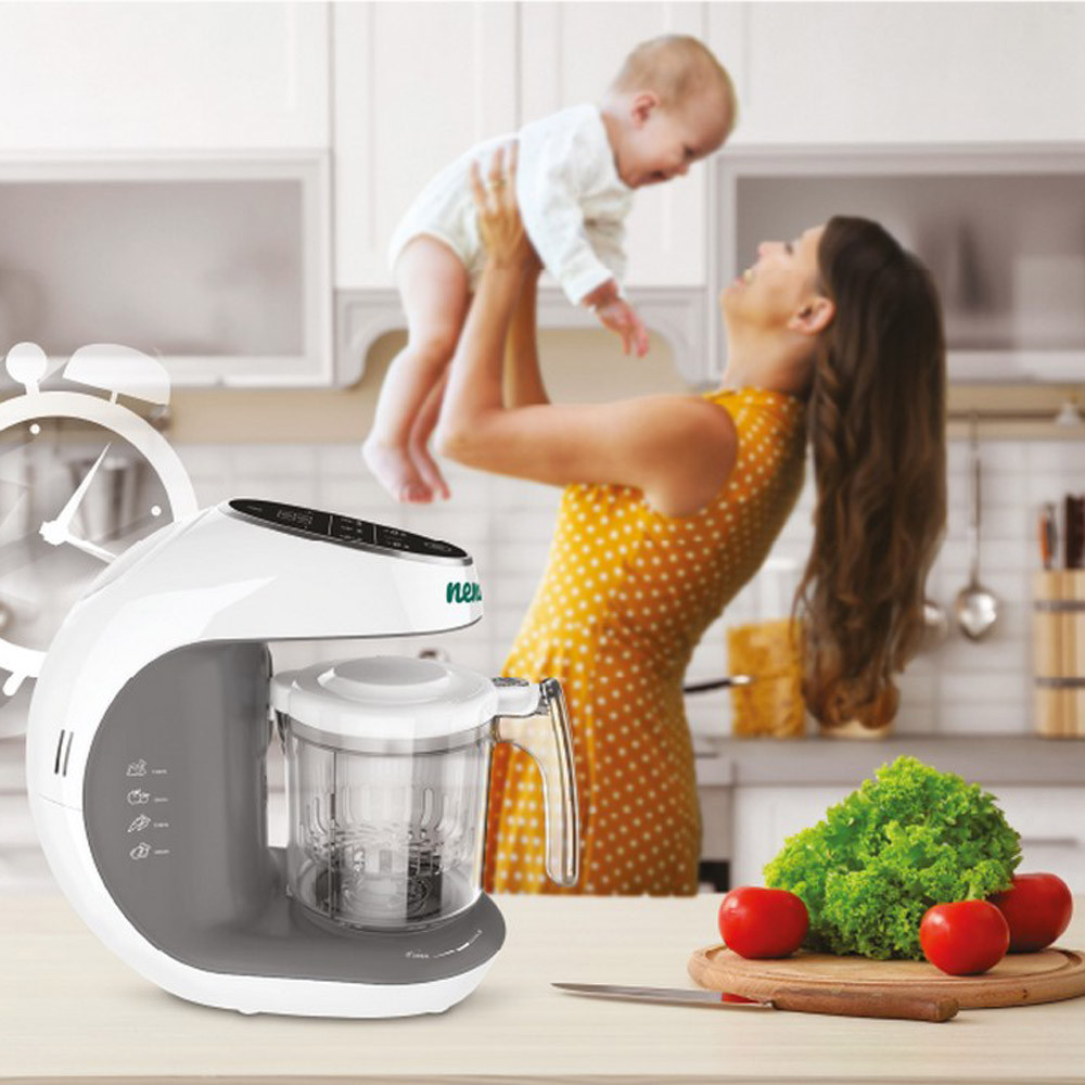 TISZTA KONYHAA Neno Cibo turmixgépét mindenki szeretni fogja, akik szeretik a rendet és a kényelmet. A Neno Cibo készülékkel nem kell többé külön edényekben az ételeket elkészíteni, hiszen ezzel a készülékkel mindent egyszerre meg tudunk oldani.EGÉSZSÉGES ÉTKEZÉSA Neno Cibo készülékkel a saját ízlésed szerint tudod gyermeked ételét elkészíteni. Tápanyagokban gazdag leveseket, zöldségek, gyümölcsök fokozatos bevezetését tudod elkészíteni gyermeked számára. Esetleges allergia esetén olyan ételeket tudsz adni gyermekednek, melyeknek biztosan ismered az összetevõit.APRÍTÁSA Neno Cibo készülék aprító funkcióval rendelkezik, melynek köszönhetõen akár párolás után közvetlenül a készülékben tudod hatékonyan és gyorsan a nagyobb zöldség és gyümölcs darabokat felaprítani.IMPULZUS MÓDA Neno Cibo impulzus módjának köszönhetõen egy gombnyomással tudod a penge forgási sebességét szabályozni. Ezzel a funkcióval a lepárolt zöldségekbõl akár leves állagú ételeket is készíthetsz, vagy csak a nagyobb darabokat apróra vághatod.GÕZFUNKCIÓA Neno Cibo gõzfunkcióval is rendelkezik, melynek köszönhetõen ízletes és tápláló ételeket készíthetsz, miközben az összes értékes tápanyagot megõrzöd az ételekben.EGÉSZSÉGES TÁPLÁLKOZÁSA Neno Cibo készülék azoknak az anyáknak készült, akik az egészséges táplálkozást tartják szem elõtt, és szeretnék a babájuknak a legjobbat nyújtani minden étkezés alkalmával.IDÕ MEGTAKARÍTÁSA beépített aprító, gõzölõ és többfunkciós turmixnak köszönhetõen értékes idõt tudunk megtakarítani a Neno Cibo használatával. Így több idõd lesz gyermekeddel foglalkozni.KIJELZÕNagy kijelzõjének köszönhetõen a Neno Cibo használata nagyon egyszerû lesz. Kijelzõjén csak a legfontosabb funkciók kaptak helyet, melyek a mindennapi használatot könnyítik meg.HORDOZHATÓSÁGA Neno Cibo nem foglal nagy helyet, kompakt mérettel rendelkezik, így szinte bárhova magaddal tudod vinni.BIZTONSÁGA Neno Cibo készülék még nagy sebességnél is mozdulatlan marad az asztalon. Ez köszönhetõ, a készülék alján elhelyezett gumitalpaknak, melyek garantálják a biztonságos használatot.HASZNÁLATA GYEREKJÁTÉKA készüléket úgy tervezték meg, hogy a használata gyerekjáték legyen mindenki számára. Egyszerû felépítéssel rendelkezik, mellyel idõt takaríthatunk meg minden egyes használat során.AUTOMATIKUS TISZTÍTÁSA Neno Cibo automatikus tisztítási funkcióval rendelkezik. Egyszerûen csak önts vizet a turmixpohárba, válaszd ki az automatikus tisztítás opciót. A mûvelet végeztével csak ürítsd ki a tálat, és már kész is van a készülék a következõ használtra.Teljesítmény: 300WKeverési teljesítmény: 130WÁramellátás és frekvencia: 220V-240V, 50/60HzVíztartály kapacitása: 200 mlKeverõcsésze kapacitása: 300 mlNettó tömeg: 1870 gBruttó súly: 1900gMéretek: 25,9x14x29,5 cmDoboz méretei: 31×18,8×31,3 cmDoboz súlya: 2,6 kg