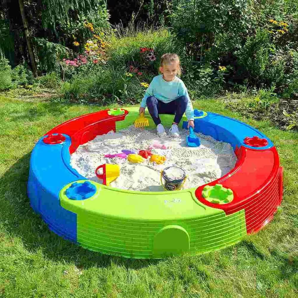 Tartós és kiváló minõségû tanúsított mûanyagból készült nagyméretû összecsukható homokozó. 6 modulból és egy nem szõtt szövetbõl áll, amelyre ráhelyezzük a homokozót. A hat modul egyszerû összekapcsolásával szereljük össze a homokozót, majd helyezzük sík felületre. Megtölthetõ homokkal, vagy száraz labdamedenceként is használható. A homokozó felsõ részén található mélyedésekbe vizet önthetünk.Összecsukva nagyon kevés helyet foglal.JELLEMZÕK:- egyszerû összeszerelés- nem szõtt szövettel védett alj a homokozó elgazosodása ellen- éles szélektõl mentes, gyerekbiztos termék- 12 hónapnál idõsebb gyermekek számára- egyedi kartondoboz csomagolás – tökéletes ajándék- összeszerelési útmutatóval- származási hely: EU- tanúsított anyagokból készült termék- maximális terhelés 50 kgMÉRETEK:- külsõ átmérõ: 170 cm- belsõ átmérõ: 120 cm- magasság: 21 cm- tömeg: 7 kgCSOMAGOLÁS/KARTONDOBOZ MÉRETE:- 43 x 38 x 100 cm- tömeg: 8,3 kg