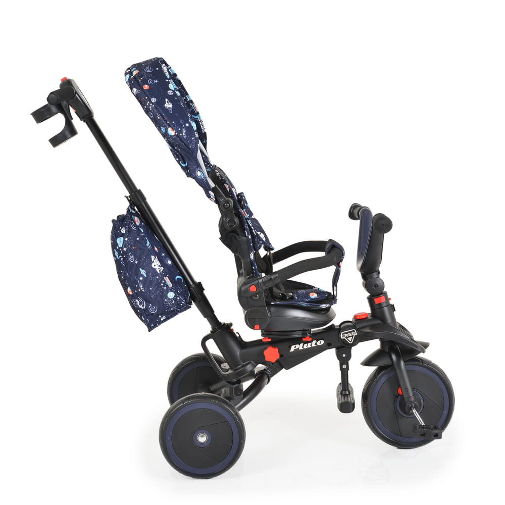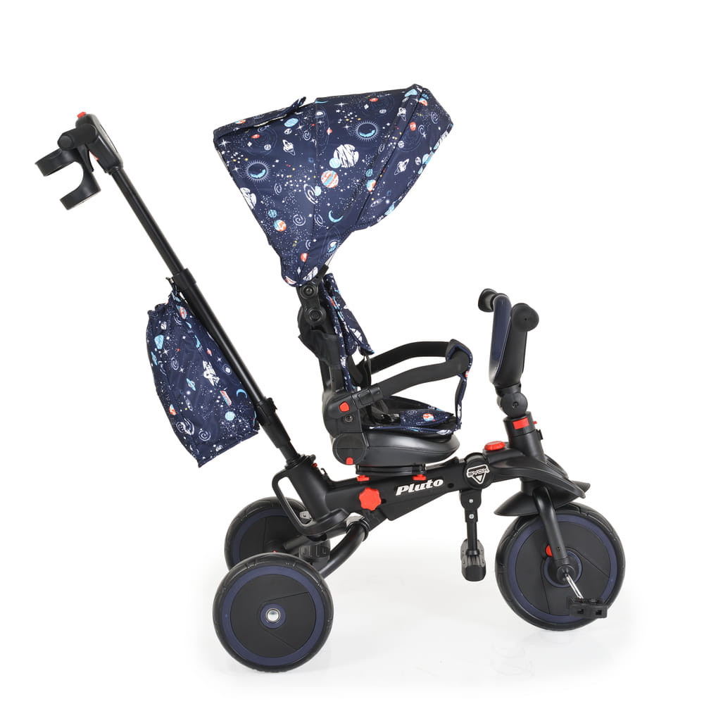 1 és fél éves kor feletti gyermekeknek, akiknek a maximális súlya legfeljebb 25 kg. Használható kupola, szülői irányító fogantyú és biztonsági deszka nélkül. Összecsukható hátsó váz. Összecsukható kormány. Ülés: 360 fokban forgatható; állítható háttámla. Szülői tolókar - állítható, irányítja a kerekek mozgását. Kerekek - EVA. Első kerék kuplunggal a szabadonfutó funkcióhoz. Puha biztonsági rúd. Levehető ülőpárna és 3 pontos biztonsági öv. Egy hátsó fék, amely mindkét hátsó keréket blokkolhatja. Pohártartó. Játéktáska.