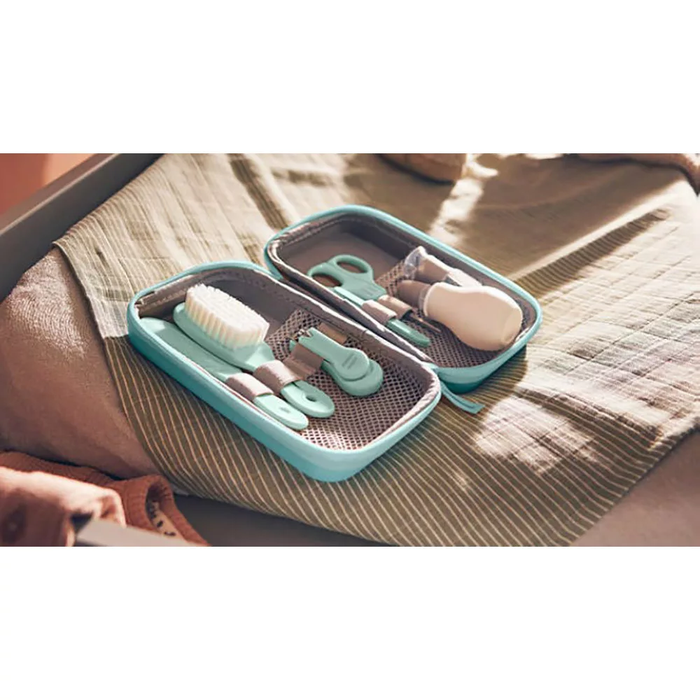 Minden, ami a megfelelõ gyermekgondozáshoz szükségesA babaápolási készlettel a legjobb gondoskodást nyújthatja gyermekének A kompakt készlet tartalmaz egy puha hegyû orrszívót, egy ujjra húzható fogkefét és egy babaápolási készletet.A rekeszes készlet a további babaápolási termékeknek is biztosít helyet, ugyanakkor kis méretû, így könnyen magával viheti. Ideális az óvodába és utazásokhoz.Utazáshoz tökéletesen használható kompakt hordtáska- Ideális ajándék- Kompakt és rekeszes készlet7 nélkülözhetetlen babaápolási eszköz:- Köröm- és hajápoló készlet- Orrszívó puha, hajlékony véggel- Egy ujjra húzható fogkefeOrrszívóAz orrszívó elõsegíti, hogy gyermeke légutai szabadok legyenek, így gyermeke jobban fogja érezni magát, és jobban fog aludni.Egy ujjra húzható fogkefeGyengéden masszírozza gyermeke ínyét és fogait.Köröm- és hajápoló készletKomplett körömápoló készlet lekerekített végû ollóval, körömcsipesszel és három körömpolírozóval. Ezenkívül hajápoló készlet és puha hajkefe.Tökéletes ajándék minden ( kezdõ) szülõ számára.Csomagolási méretek (Sz x Ma x Mé):117 x 174,5 x 51 mm""