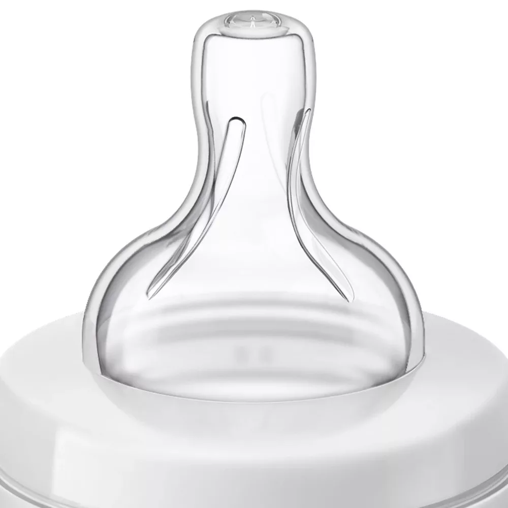 A hasfájás megelõzõ szeleprendszerrel rendelkezõ hasfájást csökkentõ cumisüveg és a texturált etetõcumi a kialakítása révén kiemelkedõen kényelmessé teszi az etetést, amelyet így csak a lehetõ legritkábban szükséges megszakítani. A beépített, hasfájást megelõzõ szelep kivezeti a levegõt az üvegbõl, így az nem jut be a baba hasába. Egyedülálló, hasfájást csökkentõ szelep – a levegõnyelés csökkentésére tervezveA klinikailag igazolt* hasfájást csökkentõ szelepünk a tervezésénél fogva csökkenti a hasfájást és a gázképzõdést. Klinikai vizsgálatok kimutatták, hogy a Philips Avent cumisüveg csökkenti a hasfájást és a nyugtalanságot. Jelentõsen mérsékli az éjszakai nyûgösséget, mivel a Philips Avent hasfájást csökkentõ cumisüvegbõl etetett babák 60%-kal kevésbé nyugtalanok, mint azok, akik egy vezetõ versenytárs szeleppel rendelkezõ cumisüvegét használják.A bordázott kialakítás nem engedi összetapadni a cumit, így nem kell megszakítani az etetéstA cumifej formája biztos ráharapást tesz lehetõvé, míg a bordázott kialakítás nem engedi összetapadni a cumifejet, így megszakítás nélkül, kényelmesen etetheti kisbabáját.A biztos ráharapáshoz tervezett formájú cumifejA cumifej a kialakításának köszönhetõen nem tapad össze, biztos ráharapást biztosítva a babának, így nem kell megszakítani az etetést.Szivárgásmentes kialakításAz Anti-colic cumisüveget az etetés közbeni szivárgás megelõzésére tervezték az élvezhetõbb etetés érdekében.Kompatibilis kínálat a szoptatástól a pohárigVálogasson kedvére mellszívóink, üvegeink és pohárelemeink közül, és alkossa meg az Ön számára legideálisabb terméket.A cumisüveg BPA-mentesAz új Philips Avent Anti-colic cumisüveg BPA-mentes anyagból (PP) készült.Különféle folyáserõsségek állnak rendelkezésre a fejlõdõ baba számáraA Philips Avent hasfájást csökkentõ cumifejek különbözõ átfolyási sebességekkel kaphatók, hogy követhessék a baba fejlõdését. Higiéniai okokból a cumifejeket 3 havonta tanácsos kicserélni. A Philips Avent hasfájást csökkentõ cumisüvegeket kizárólag Philips Avent hasfájást csökkentõ cumifejekkel használja.Kompatibilis a hasfájáscsökkentõ termékekkelTeljes kompatibilitás a Philips Avent hasfájást csökkentõ cumisüvegekkel, mind az AirFree szeleppel rendelkezõkkel, mind az azzal nem rendelkezõkkel.- 125ml ûrtartalom- újszülött átfolyású etetõcumi (1db)- újszülött kortól ajánlott- Fontos! A termék egészségvédelmi és higiéniai terméknek minõsül. Amennyiben a csomagolás felbontásra került, vagy a kipróbálás jelei látszódnak a terméken, úgy a 14 napos elállási jog érvényét veszíti a 45/2014. (II. 26.) korm. rendelet 29. § (1) bekezdése alapján.