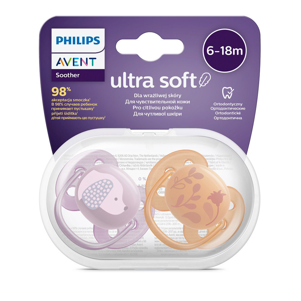 A legpuhább játszócumi – a baba érzékeny bõréhez. Kevesebb benyomódás és irritáció jele a bõrön.Adja meg a baba érzékeny bõrének a szükséges ápolást a Philips Avent Ultrasoft cumival. A nagyon puha* és rugalmas felsõ rész követi a baba arcának ívét, így kevesebb lenyomat és irritáció jele marad a bõrön.Tulajdonságok:- Kivételesen puha és rugalmas felsõ rész- Lekerekített cumipajzs- Sterilizálás és tárolás egyetlen praktikus tokban- Kényelmes sterilizálás 3 perc alatt- Kényelmesen puha, bársonyos cumi- A játszócumi 100% élelmiszer minõségû szilikonból készült.- A szájüreg természetes fejlõdése- Természetes a baba számára- Garantált minõség- Hollandiában tervezték és gyártottákPuha és rugalmas cumipajzsAz érzékeny bõr extra gondoskodást igényel. A cumipajzs technológiának köszönhetõen a cumi kíméletesebben követi a baba arcának természetes vonalait a kényelmes illeszkedés érdekében. Kevésbé hagy nyomot a gyermeke bõrén, illetve kevésbé dörzsöli aztLekerekített cumipajzsA lekerekített cumipajzsunk minimalizálja a nyomást, így gyengéd a gyermeke arcához, és kényelmes megnyugtatást biztosít.A játszócumi 100% szilikonból készültSzándékosan választottuk a szilikon anyagot az Ultrasoft és Ultra air játszócumikhoz, mert ez egy biztonságos és inert anyag, amelyet gyakran használnak az orvosi gyakorlatban, és amely mentes a veszélyes vegyi anyagoktól, endokrin aktív összetevõktõl (pl. BPA) és allergénektõl.Fogszabályozós játszócumiOrtodontikus, szimmetrikus és puha szilikon cumijainkat úgy terveztük, hogy biztosítsák a szájpadlás természetes fejlõdését.Természetes a baba számáraTexturált szilikon cuminkat úgy terveztük, hogy hasonlítson az anya mellére.3 perc alatt sterilizálhatóAz Ultrasoft és Ultra air cumijainkhoz mellékelt utazótok egyben sterilizálóként is szolgál. Csak öntsön bele vizet, és tegye be a mikrohullámú sütõbe Nyugodt lehet afelõl, hogy tiszta és használatra kész lesz a következõ alkalomra.Hollandiában készültUltrasoft és Ultra air játszócumijainkat Hollandiában tervezték és gyártják.- Fontos! A termék egészségvédelmi és higiéniai terméknek minõsül. Amennyiben a csomagolás felbontásra került, vagy a kipróbálás jelei látszódnak a terméken, úgy a 14 napos elállási jog érvényét veszíti a 45/2014. (II. 26.) korm. rendelet 29. § (1) bekezdése alapján.