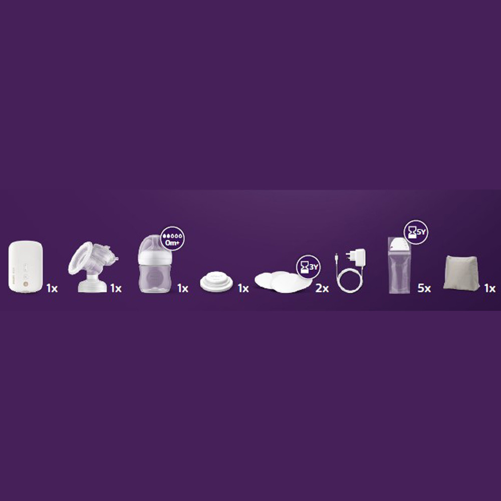 Lépjen be a fejés új korszakába, amelyben a szívóerõ és a mellbimbó-stimuláció tökéletes egyensúlyban van, olyan természetesen, ahogyan azt a babák szopástechnikájánál megfigyelhettük. A Philips Avent elektromos mellszívó optimális tejáramlást biztosít, és gyengéden alkalmazkodik az Ön mellbimbójának méretéhez és alakjához.Természetes mozgást lehetõvé tevõ technológia a tej gyors áramlásáért*Több tejet tud lefejni kevesebb idõ alatt* a párnával, amely ugyanúgy stimulálja a melleket a tej lefejéséhez, mint a baba. Tökéletesen vált stimulációs módból fejési módba, és kellõ mértékû mellbimbó-stimulálásról és szívásról gondoskodik a maximális tejáramlás érdekében. Tejáramlás-beinduláshoz szükséges idõre (tejleadó reflex beindulásáig eltelt idõ – MER) vonatkozó eredmények alapján.*Egy méretû, puha és adaptív szilikonpárnaEgyetlen, univerzális méret. Mivel mindannyiunkat különbözõ formák és méretek jellemeznek, a szilikonpárna lágyan hajlik és alkalmazkodik, hogy illeszkedjen az adott mellbimbóhoz. A mellbimbó-méretek 99,98%-ához illeszkedik* (max. 30 mm).Újratölthetõ akkumulátor az útközbeni használathozÚtközben is gond nélkül fejhet, anélkül, hogy aggódnia kellene a tápellátás miatt. Újratölthetõ akkumulátorunkhoz egy micro-USB-adapter tartozik, és egyetlen teljes töltés akár három alkalomra is elég.A következõt tartalmazza:- eldobható melltartóbetét 4db- mellszívó készlet 1db- micro-USB adapter 1db- motoregység (újratölthetõ) 1db- tejzáró 1db- tejgyûjtõ zacskó 5db- utazótok 1db- Fontos! A termék egészségvédelmi és higiéniai terméknek minõsül. Amennyiben a csomagolás felbontásra került, vagy a kipróbálás jelei látszódnak a terméken, úgy a 14 napos elállási jog érvényét veszíti a 45/2014. (II. 26.) korm. rendelet 29. § (1) bekezdése alapján.