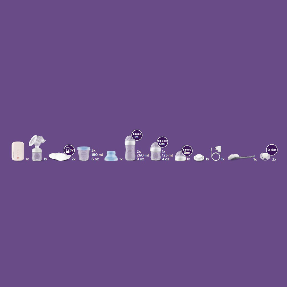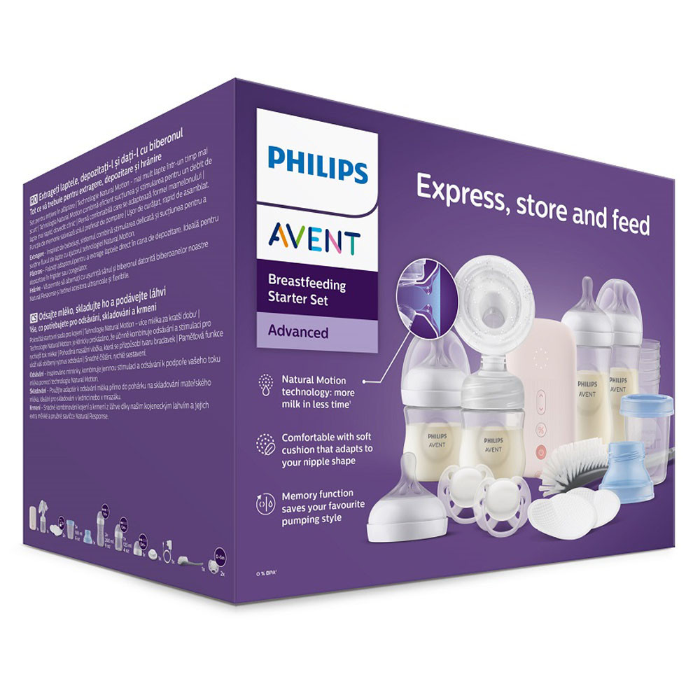 Lépjen be a fejés új korszakába, amelyben a szívóerõ és a mellbimbó-stimuláció tökéletes egyensúlyban van, olyan természetesen, ahogyan azt a babák szopástechnikájánál megfigyelhettük. A Philips Avent elektromos mellszívó optimális tejáramlást biztosít, és gyengéden alkalmazkodik az Ön mellbimbójának méretéhez és alakjához.Természetes mozgást lehetõvé tevõ technológia a tej gyors áramlásáért*Több tejet tud lefejni kevesebb idõ alatt* a párnával, amely ugyanúgy stimulálja a melleket a tej lefejéséhez, mint a baba. Tökéletesen vált stimulációs módból fejési módba, és kellõ mértékû mellbimbó-stimulálásról és szívásról gondoskodik a maximális tejáramlás érdekében. Tejáramlás-beinduláshoz szükséges idõre (tejleadó reflex beindulásáig eltelt idõ – MER) vonatkozó eredmények alapján.*Egy méretû, puha és adaptív szilikonpárnaEgyetlen, univerzális méret. Mivel mindannyiunkat különbözõ formák és méretek jellemeznek, a szilikonpárna lágyan hajlik és alkalmazkodik, hogy illeszkedjen az adott mellbimbóhoz. A mellbimbó-méretek 99,98%-ához illeszkedik* (max. 30 mm).8 stimulációs és 16 fejési üzemmódHozza ki a legtöbbet minden fejésbõl a tejáramlást serkentõ 8 üzemmóddal és 16 fejési üzemmóddal. A finombeállításokat menet közben is elvégezheti.A következõt tartalmazza:- üvegmosó kefe 1db- eldobható melltartóbetét 4db- mellszívó készlet 1db- motoregység (kizárólag vezetékes használat) 1db- tejzáró 1db- ultra soft fehér játszócumik 0–6 hónapos korig 2db- 260 ml-es cumisüvegek 2db- 125 ml-es cumisüvegek 1db- 125 ml-es üveg 0 hónapos kortól adható cumifejjel 1db- micro-USB adapter 1db- via fedeles poharak, 180 ml 5db- adapter 1db- Fontos! A termék egészségvédelmi és higiéniai terméknek minõsül. Amennyiben a csomagolás felbontásra került, vagy a kipróbálás jelei látszódnak a terméken, úgy a 14 napos elállási jog érvényét veszíti a 45/2014. (II. 26.) korm. rendelet 29. § (1) bekezdése alapján.