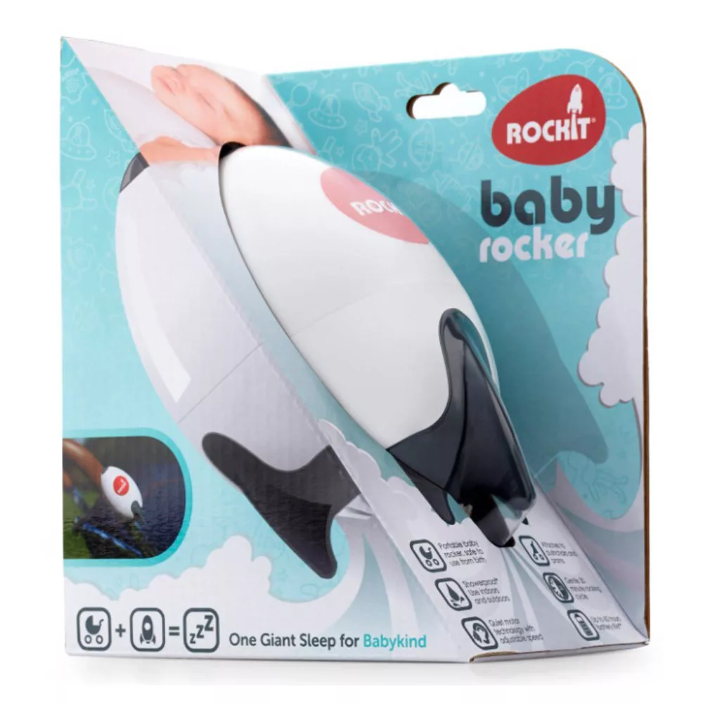 Hordozható babakocsi ringató, bármilyen típusú babakocsihoz .A babád azonnal felébred, amint a babakocsi megáll?A megoldás a Rockit, ami álomba ringatja babádat,- és nagy segítsége lehet a szülõknek, ha nincs egy felesleges „szabad kéz” a ringatáshoz!Segítséget nyújt, hogy a használata mellett a kezeidet szabadon használhasd, akár másik gyermekeddel foglalkozz, vagy más tevékenységet végezz!A tudományos vizsgálatok azt mutatják, hogy a készülék vibrációs szintje szorosan imitálja a normál kéz általi babakocsi ringatást és a nyugtató mozgás lágyabb, kíméletesebb, mint amikor a babakocsit az útburkolaton tolja.Egyszerûen csatlakoztassa a babakocsihoz, nyomja meg a bekapcsoló gombot, állítsa be a sebességet, és a ringató gyengéden álomba ringatja babáját, ahogyan azt Ön is tenné.Szelíd lengõ mozgást használ, hogy biztonságosan megnyugtassa a babát!Funkciói :• A babakocsik minden típusához csatlakoztatható• Csendes motor állítható fordulatszámmal• Gyengéd 30 perces ringatási ciklus• „Cseppálló”, beltéren és kültéren is használható• Születéstõl biztonságosan használható• Akár 60 óra akkumulátor élettartam *(* az elért 60 órás maximális üzemidõ a leglassabb, sebességénél függõlegesen használva)• 4 db AA alkáli elemmel mûködik (nem tartozék)