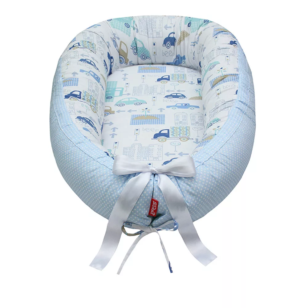 Scamp babafészek kókuszbetétes Blue Car Dots BF025