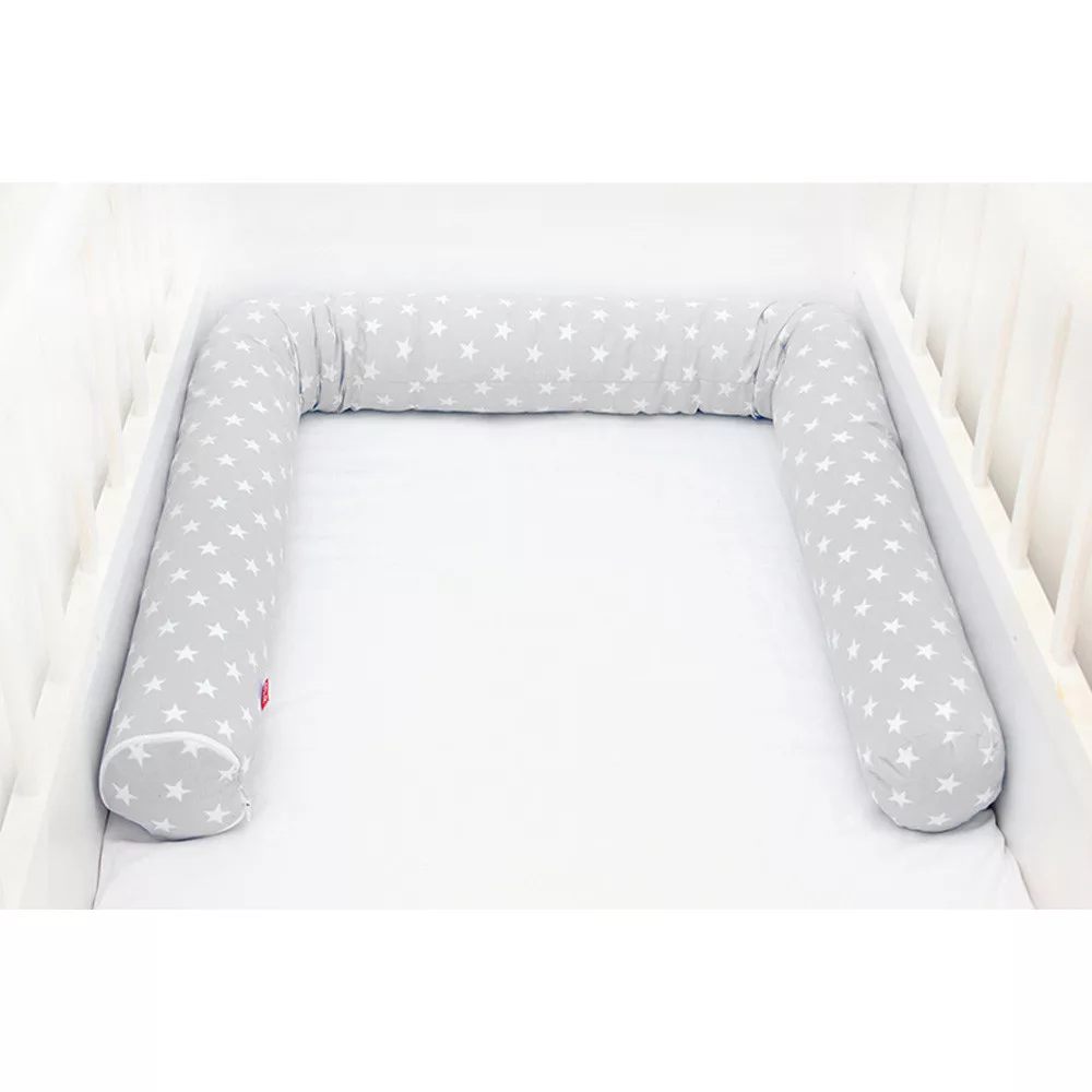 A rácsvédõk mostanra a babaszoba elengedhetetlen kiegészítõi lettek.Amellett, hogy védi a piciket, az esetleges sérülésektõl, nagyon divatosak is: egyértelmûen feldobják a babaszoba hangulatát.A rácsvédõ hengerpárnák többféle méretben kaphatóak: 180 cm és 210 cm.Anyaga 100% pamutvászon, OEKO-TEX minõsítéssel, a hátoldalára rávasalva egy vetex réteg, ami a szebb tartás mellett megakadályozza, hogy a töltõanyag kibújjon a vásznon keresztül.A töltelék szilikonizált poliésztergolyó, mely szintén OEKO-TEX minõsítésû, antiallergén alapanyag.A párnák végét cipzárral láttuk el, így a töltõanyag mennyisége szabályozható: csökkenthetõ vagy növelhetõ.A hengerpárnák kompletten, a töltelékkel együtt, mosógépben is moshatók, 40 fokon.Anyaga:Huzat: 100% pamutvászonTöltet: 100% szilikonizált poliésztergolyóMindkét alapanyag Oeko-tex minõsítésûA hengerpárnák átmérõje: 11-12 cm, hossza pedig választható: 180 cm vagy 210 cm. A méretekhez segítség:180 cm: 60×120 cm-es kiságy fele.210 cm: 70×140 cm-es kiságy fele.Amennyiben teljesen körbeérõ rácsvédõt szeretne könnyedén megoldható 2db 180cm-es (60×120cm-es kiságy) vagy 2db 210 cm-es (70×140cm-es kiságy) fonott rácsvédõ megvásárlásával.