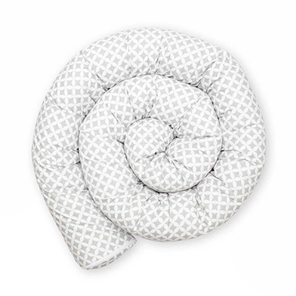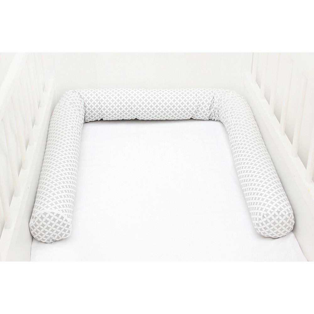 A rácsvédõk mostanra a babaszoba elengedhetetlen kiegészítõi lettek.Amellett, hogy védi a piciket, az esetleges sérülésektõl, nagyon divatosak is: egyértelmûen feldobják a babaszoba hangulatát.A rácsvédõ hengerpárnák többféle méretben kaphatóak: 180 cm és 210 cm.Anyaga 100% pamutvászon, OEKO-TEX minõsítéssel, a hátoldalára rávasalva egy vetex réteg, ami a szebb tartás mellett megakadályozza, hogy a töltõanyag kibújjon a vásznon keresztül.A töltelék szilikonizált poliésztergolyó, mely szintén OEKO-TEX minõsítésû, antiallergén alapanyag.A párnák végét cipzárral láttuk el, így a töltõanyag mennyisége szabályozható: csökkenthetõ vagy növelhetõ.A hengerpárnák kompletten, a töltelékkel együtt, mosógépben is moshatók, 40 fokon.Anyaga:Huzat: 100% pamutvászonTöltet: 100% szilikonizált poliésztergolyóMindkét alapanyag Oeko-tex minõsítésûA hengerpárnák átmérõje: 11-12 cm, hossza pedig választható: 180 cm vagy 210 cm. A méretekhez segítség:180 cm: 60×120 cm-es kiságy fele.210 cm: 70×140 cm-es kiságy fele.Amennyiben teljesen körbeérõ rácsvédõt szeretne könnyedén megoldható 2db 180cm-es (60×120cm-es kiságy) vagy 2db 210 cm-es (70×140cm-es kiságy) fonott rácsvédõ megvásárlásával.
