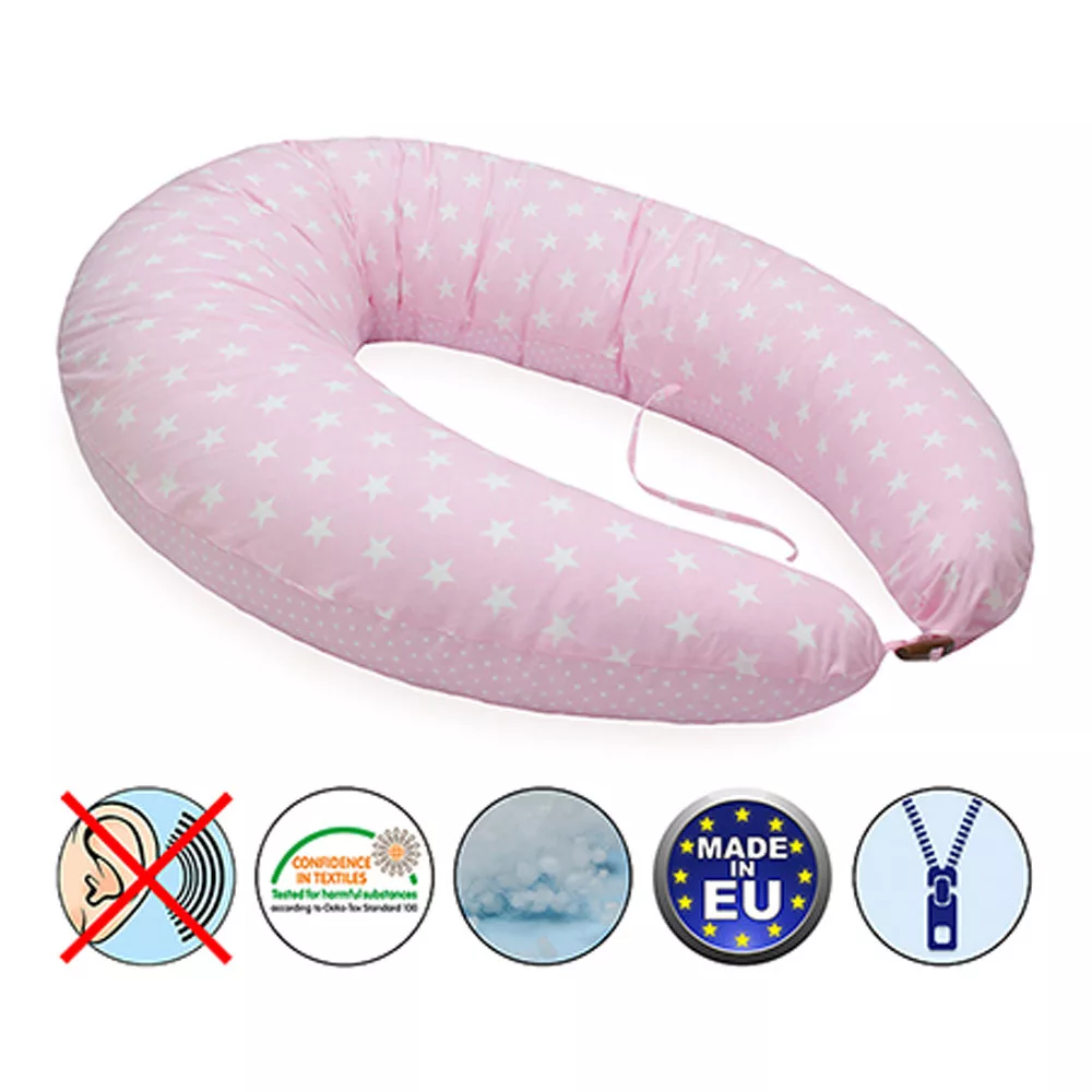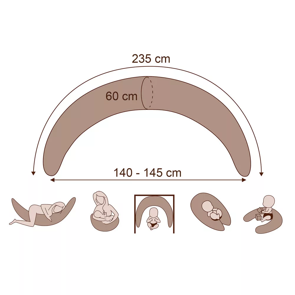 A Scamp XXL formázott kifli alakú szoptatós párna több funkcióval bír.Hatékony segítséget nyújt a várandósság idején, lehetõvé teszi, hogy a legkényelmesebb pozíciót tudja felvenni a kismama: alvásnál, pihenésnél megtámasztja a derekat, megemeli a combot, oldalt fekve alátámasztást biztosít a mama pocakjának.Gyermeke megszületése után is használható:-Szoptatás közben: kényelmes pozíciót biztosít a babának és a mamának.-Fészekként, támaszték lehet fekvõ vagy ülõ testhelyzetben.-Kiságy oldalában ágyrácsként.A termék két teljesen különálló belsõ és külsõ huzatot tartalmaz, egy mikrofiber belsõ huzat ami 100% poliészter, ez lehetõvé teszi a magas hõfokon való mosást amit akár töltelékkel együtt is moshat, cipzárral van ellátva, ez lehetõvé teszi a töltelék szabályozását, ami egy szilikonizált poliészter golyó, antiallergén és Ökotex tanúsítvánnyal rendelkezik. A poliészter golyó lényegesen erõsebb tartást biztosít a poliészterszálnál. A hagyományos gyöngy golyóval ellentétben a szilikonizált poliészter csendes.A külsõ huzat 100% pamut és szintén Ökotex minõsítéssel rendelkezik. A párna vége gombbal van ellátva a könnyebb összeerõsítés végett, a közepén egy párban kötözõ, ami a szoptatáshoz és a baba pihenéséhez nyújt segítséget.Méretei:Külsõ íve: 235 cm, ami egy 160 cm feletti személynek is megfelelõ kényelmet nyújt alváshoz, pihenéshezA két vége egymástól 140-145 cm, átmérõje: 30 cmAnyaga:Külsõ huzat: 100% pamutBelsõ huzat: mikrofiber, 100% poliészterPárna töltet: 100% szilikonizált poliészter golyó