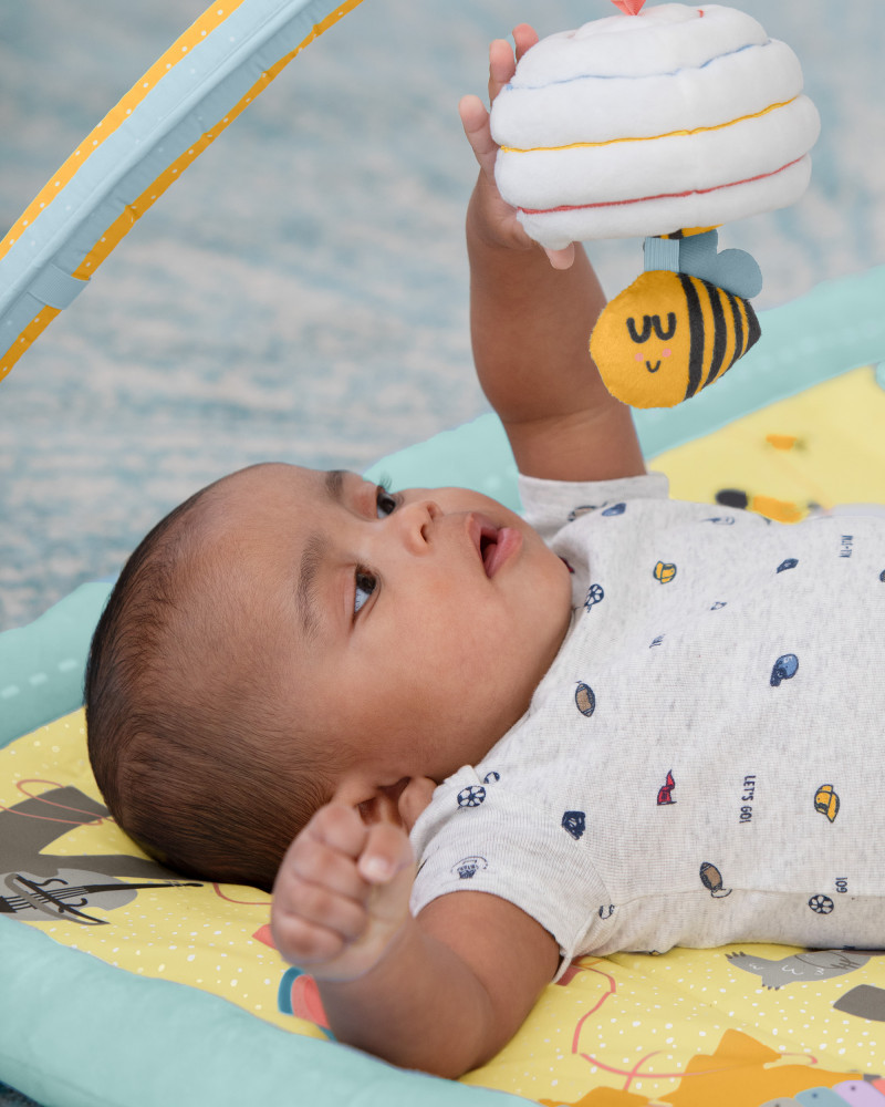 - 3 játékmód: amikor hason fekszik a baba; aztán az aktív játék időszaka, de még fekve; majd az ülő játék