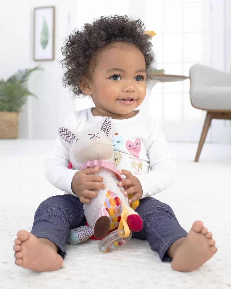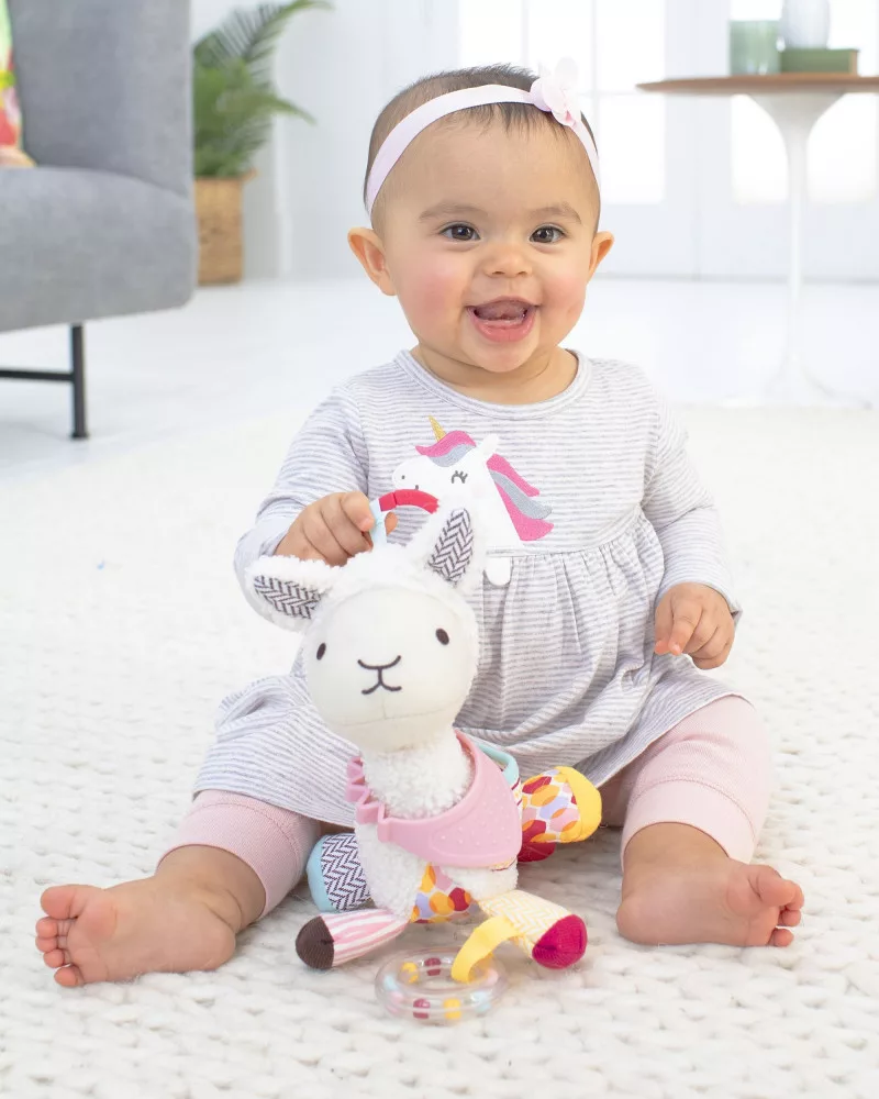 - Puha, texturált bandanás rágókás játék, rögzíthető a szülő csuklója körül