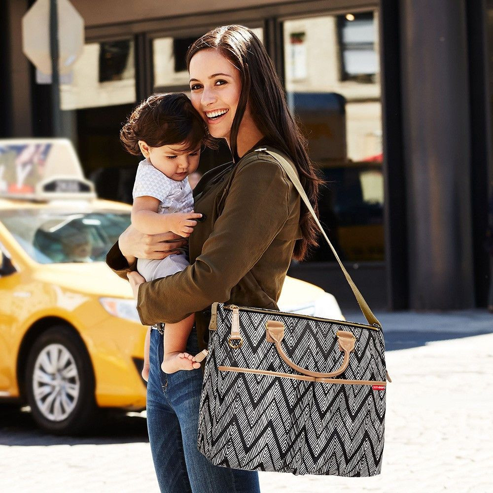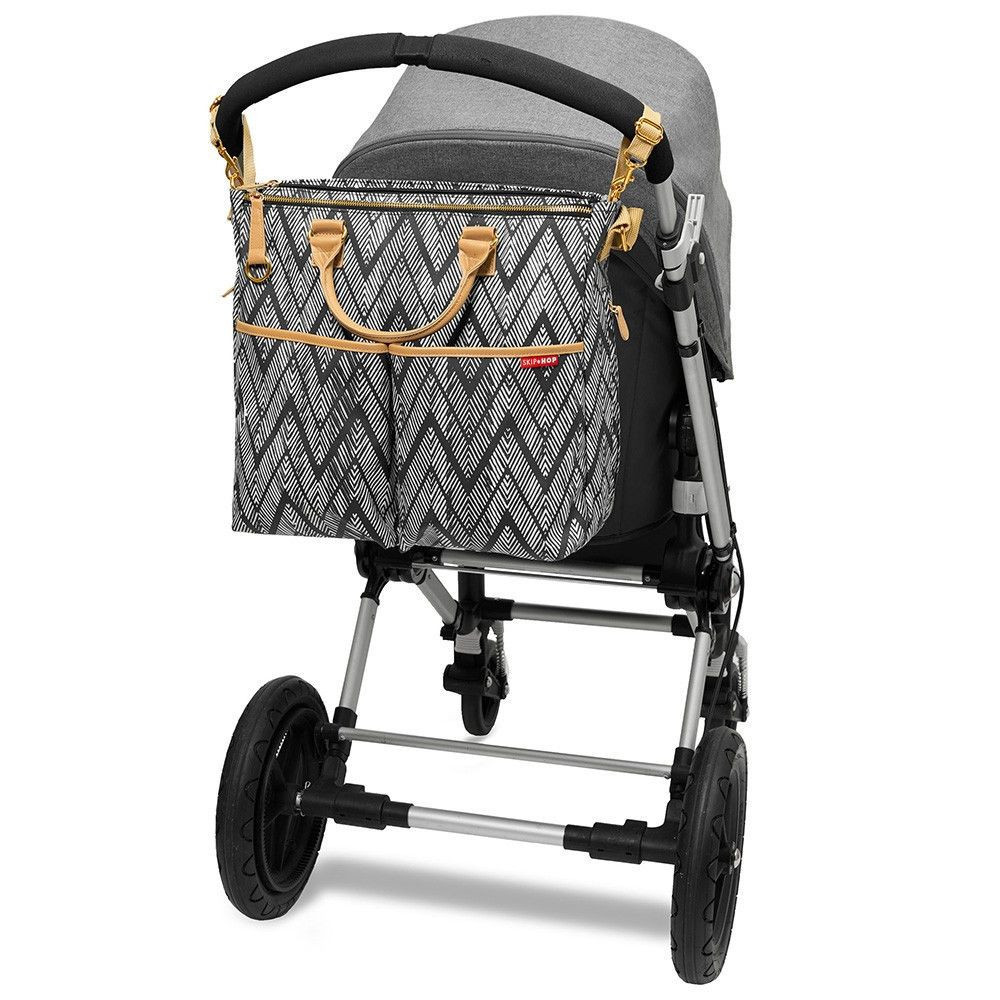 - Az újratervezett Duo táska még mindig tartalmazza az eredeti klasszikus alkotóelemeit, beleértve a szabadalmaztatott transzfercsipeszeket, amelyek könnyen átalakíthatók válltáskából babakocsi táskává.