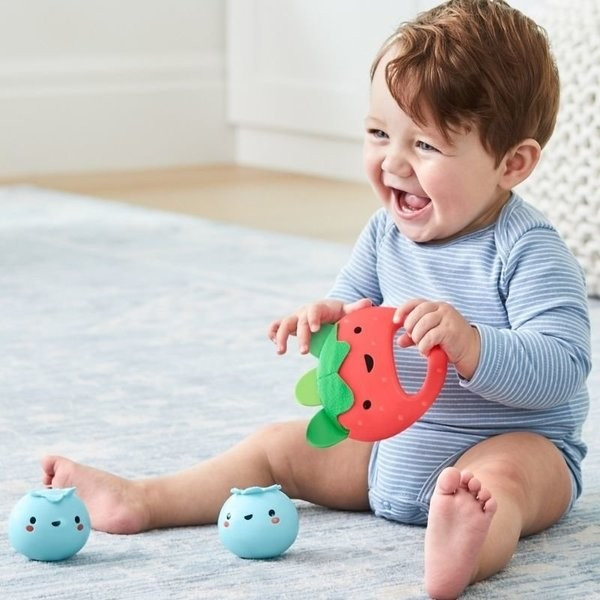 Tualjdonságok: 3 hónapos kortól ajánlott. 3 darabból álló szett, 1 eper tamburin, 2 áfonya csörgő. Könnyen megragadható forma. Elősegíti a szem-kéz koordinációt. Tisztítás: nedves ruhával. Tárolás előtt szárítsa meg.