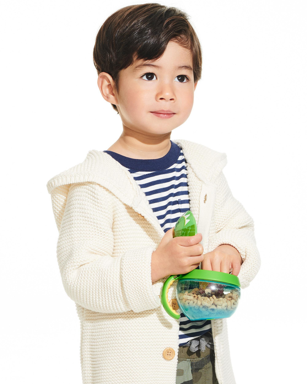 - a fogantyúban lyuk található, a babakocsihoz vagy a táskához való rögzítéshez