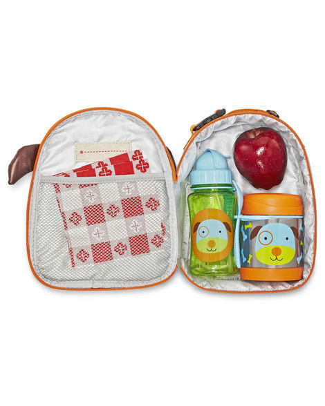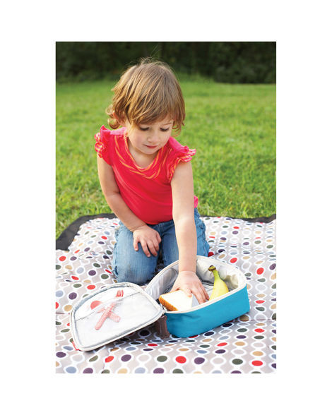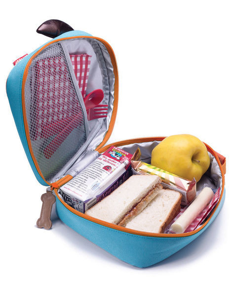 - tágas fő rekesz, amely elég nagy egy szendvics, alma és egy dobozos gyümölcslé tárolásához