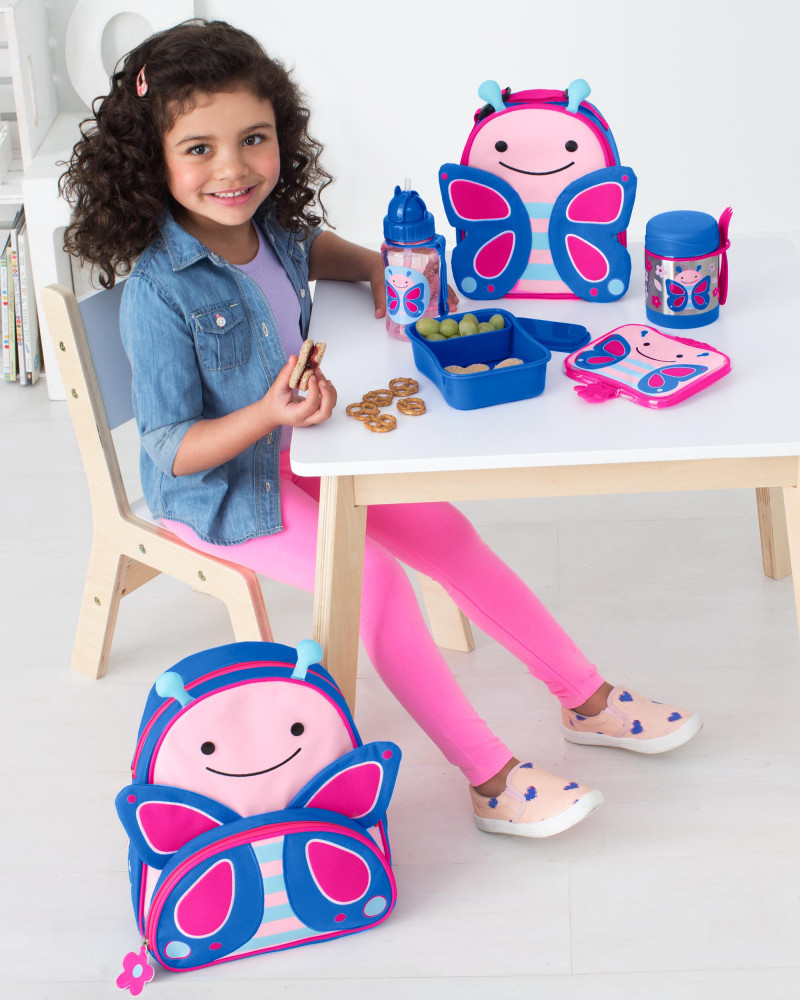 - tágas fő rekesz, amely elég nagy egy szendvics, alma és egy dobozos gyümölcslé tárolásához