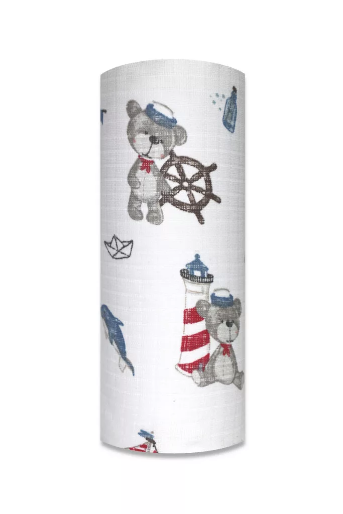 Színes mintás textil pelenka 70x80 cm-Medve kapitány