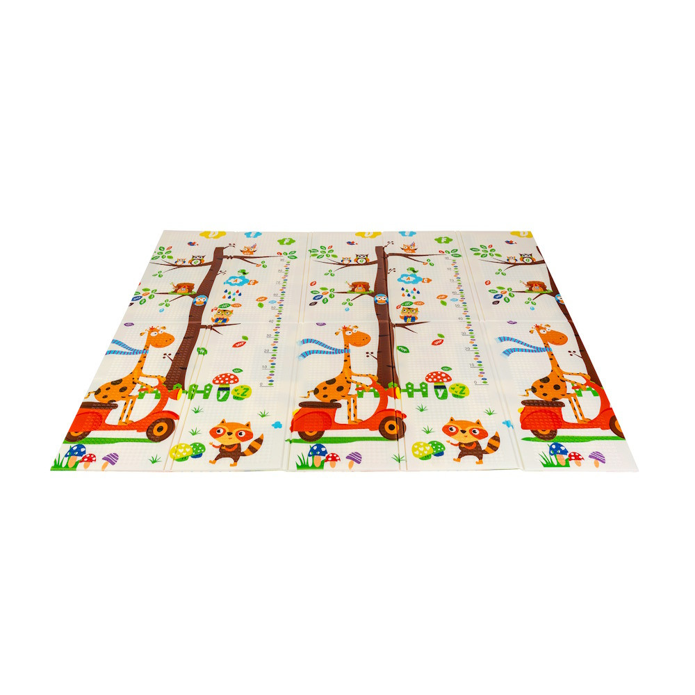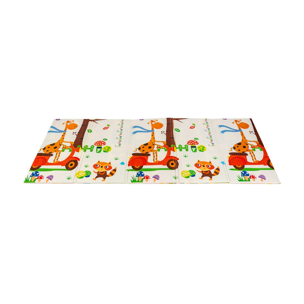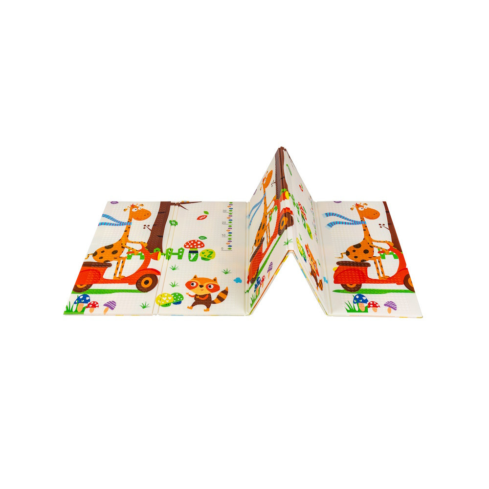 A kétoldalú összehajtható szõnyeg színes és változatos mintákat és textúrákat kínál, amelyek segítik fejleszteni a babák látását és tapintását. Tele van állatok képeivel, amelyek támogatják a legfiatalabb felhasználók intellektuális és motoros fejlõdését.A szivacs szõnyeg nagy elõnye, hogy könnyen tisztítható. Nedves ruhával könnyen áttörölhetõ. Elengedhetetlen, mert a babák mezítláb játszanak rajta és folyadékot is önthetnek rá.A szõnyeg kétoldalas szerkezeteannak egyedülálló elõnye. Mindkét oldalon innovatív minta látható. Nemcsak stimulálja a baba érzékszerveit, hanem fantáziáját is felkelti, és kreativitásra ösztönzi.A baba oktatószõnyeg tökéletes alternatívája a szõnyegeknek és plédeknek. 1 cm vastagsága miatt tökéletes párnázatot nyújt a babának, mikor elbukik.Könnyen és gyorsan összehajthatod a szõnyeget, így kompakt lesz és kis helyet foglal. Ez egyúttal nagyszerû megoldás a szülõk számára is, utazás közben. A kompakt méret lehetõvé teszi a problémamentes tárolást, a szövet táska pedig megkönnyíti a szállítást. Poliéter habszivacsból (XPE hab) és laminált fóliából készült, aminek köszönhetõen vízálló, nem szívja a nedvességet és könnyen tisztíthatóA strapabíró szivacs, amelybõl a szõnyeg készült, tökéletesen szigeteli a hõmérsékletet. Vízálló szerkezetének köszönhetõen könnyen és gyorsan eltávolíthatók az italoktól vagy ételmaradékoktól származó foltok. Termék paraméterei:-Méretek: 180 x 200 cm-Vastagság: 1 cm-Kétoldalas-Összehajtható-Könnyen tisztíthatóBiztonsági figyelmeztetések és tisztítási úmutató:- hagyományos mosogatószerrel és vízzel ajánljuk tisztítani- a tisztításhoz puha törlõkendõt vagy szivacsot használj- tisztítás után mindig hagyd jól megszáradni- a terméket óvd a mechanikai sérülésektõl- a terméket ne hagyd sokáig olyan helyen, ahol közvetlen napfénynek van kitéve, ne helyezd fûtõberendezés melléÚjszülött kortól használható.